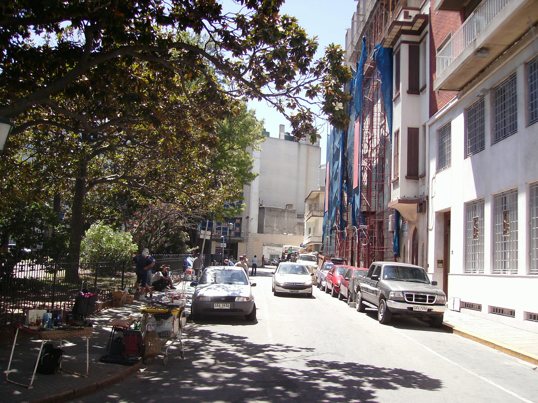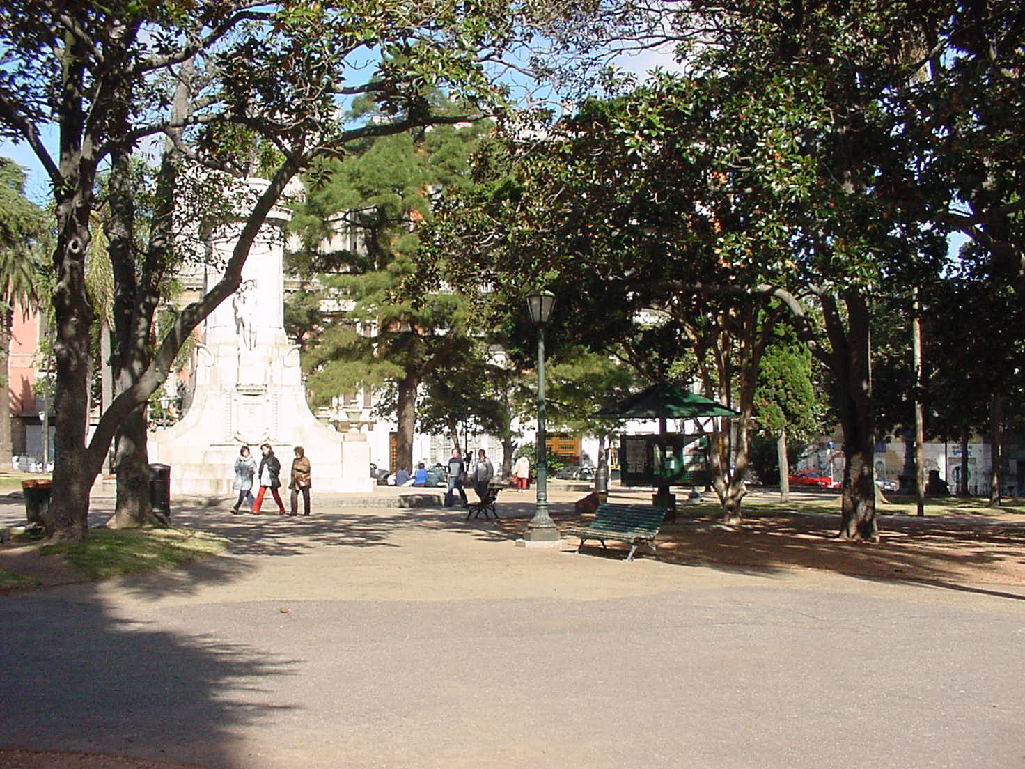 | 4.2 Apropiaciones: | La plaza mantiene un flujo vehicular de baja intensidad siendo la función de estacionamiento la principal de la circunvalación, por lo cual al comienzo y final del horario de trabajo se produce un pico de actividad vehicular. La utilización más intensa se da por parte de los peatones. Se constata una apropiación del espacio en términos de aprovechamiento de su calidad ambiental por parte de la población residente y no residente, ésta última fundamentalmente en el mediodía. En este sentido el equipamiento de apoyo a este uso se revela en las horas pico como insuficiente (bancos, zonas de sombra, papeleras, etc.). Es en cambio menor el uso de la plaza como lugar de paso ya que las características funcionales entre los sectores este (financiero-bancario) y oeste (sector comercial y habitacional) son dispares e inconexas, ni existen en la actualidad en su perímetro edilicio actividades que generen flujos peatonales significativos, con al excepción de la casa bancaria en la esquina con Rincón.