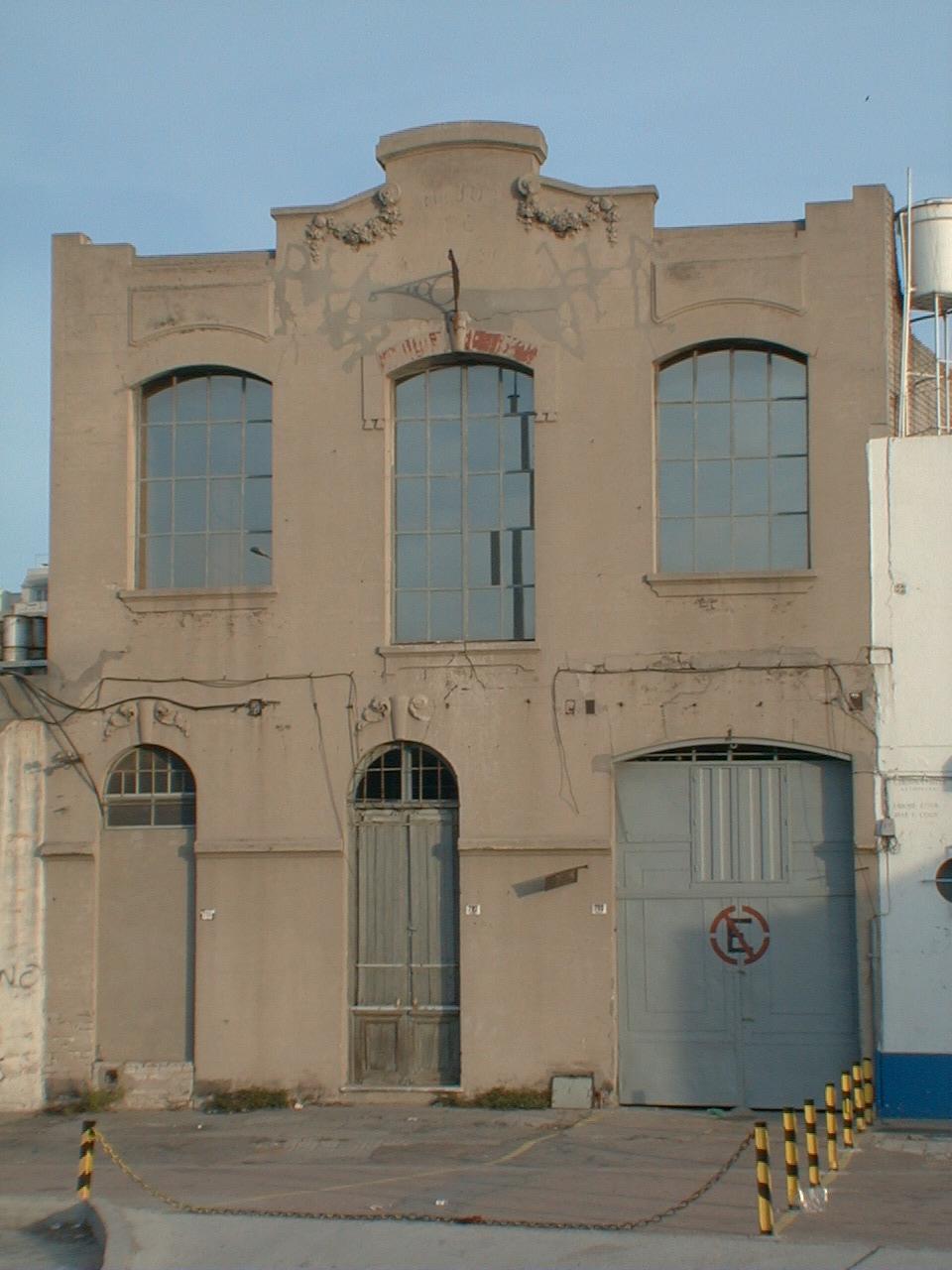 Edificio industrial de principios de siglo, de naves unitarias, desarrollado en dos niveles. Actualmente es ocupado por las oficinas de una empresa naviera, conectándose con los linderos sucesivos hacia la esquina. Presenta un tratamiento de fachada simétrico, reforzado por el tratamiento del pretil en el remate, no obstante existe cierto defasaje entre el ritmo de aberturas en planta baja y las de planta alta. Probablemente esto se deba a modificaciones en la fachada, ya presentes en 1983 y que se han mantenido hasta el presente. Se encuentra en buen estado de conservación.