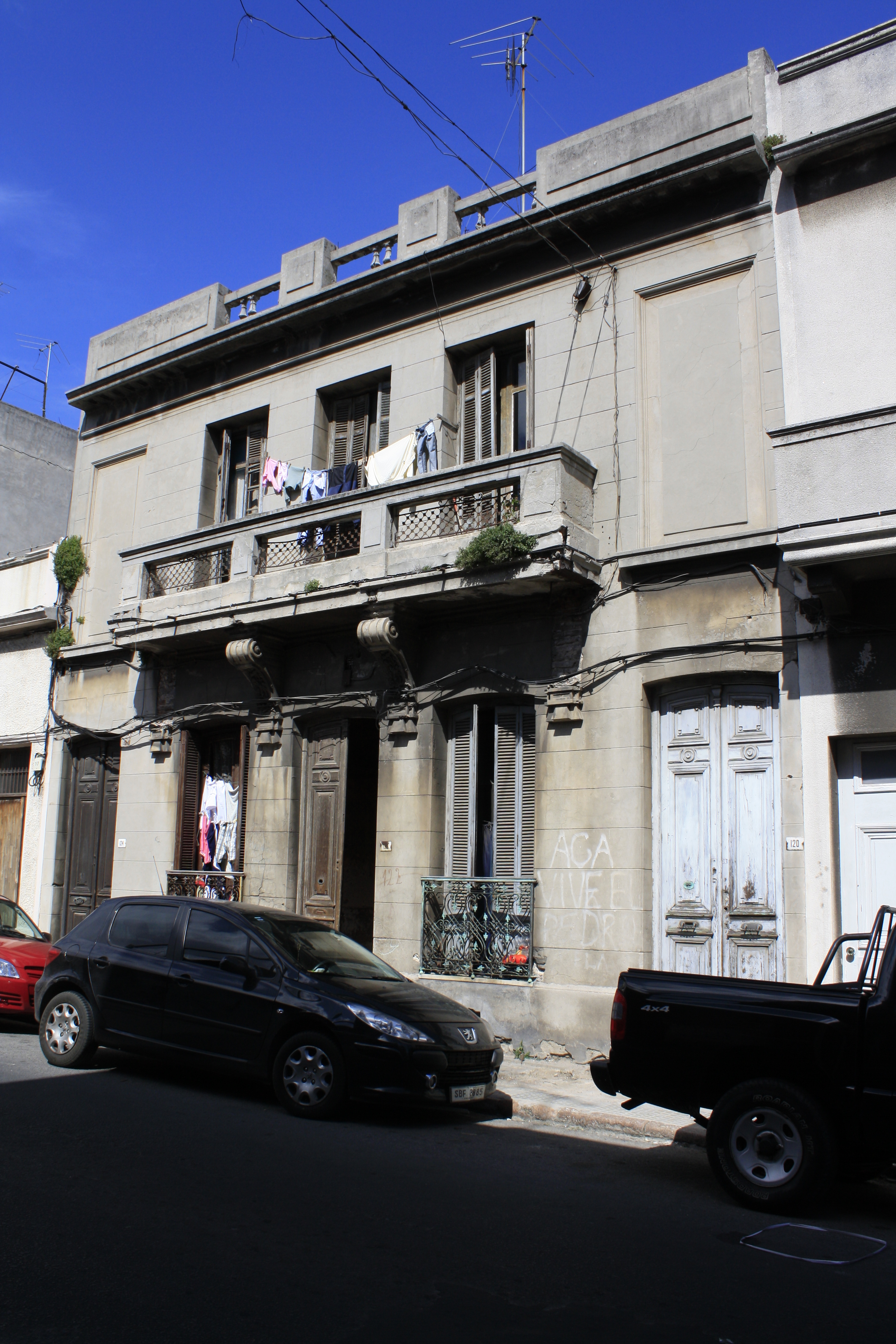 Edificio construido a principios del siglo XX destinado a vivienda. Se desarrolla en dos niveles con ocupación total de la parcela, dejando un patio-corredor central. Originalmente la planta baja desarrollaba una vivienda unifamiliar al frente y apartamentos al fondo, y el primer piso ubicaba una segunda vivienda unifamiliar. Actualmente ambas plantas se encuentran con ocupación informal. La fachada conserva la composición y ornamentación originales, con deterioro debido a la falta de mantenimiento.