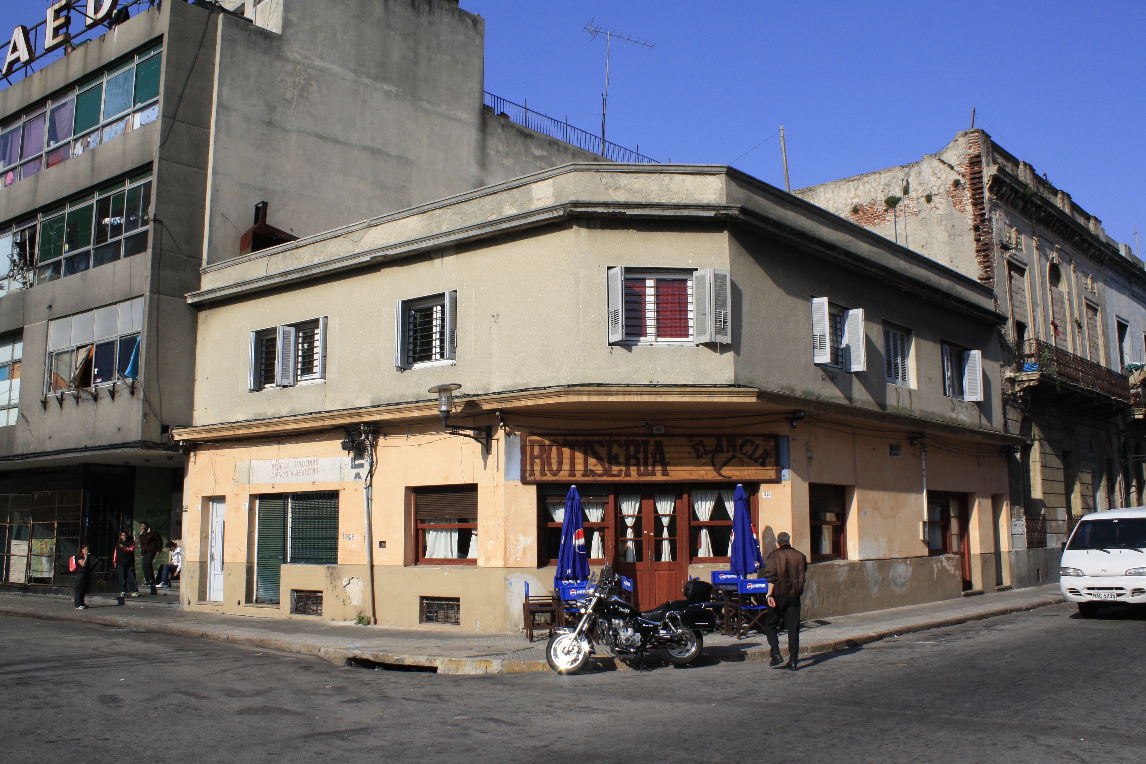 | Urbanística: | Edificio que se relaciona mal con sus vecinos y que interrumpe una secuencia uniforme con construcciones de similar tipo y lenguaje sobre la calle Guaraní. Su menor altura produce una discontinuidad negativa en el perfil. |
