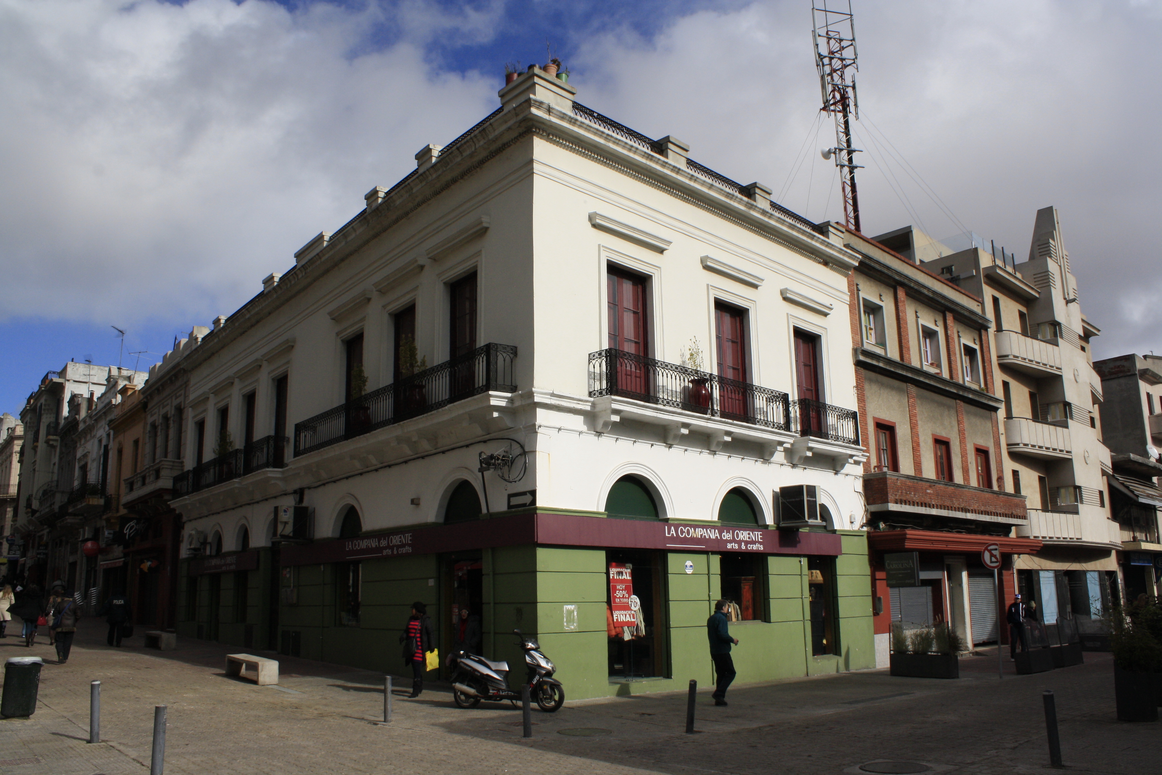 Edificio originalmente destinado a vivienda y comercio, construido a mediados del siglo XIX. Ubicado en la esquina de Pérez Castellano y Piedras, que enfrenta al Mercado del Puerto. Originalmente desarrollaba locales comerciales en planta baja y dos viviendas en el primer piso. Fue reciclado en el año 1993 con destino comercial - administrativo. Su fachada se define por un ritmo de aberturas adinteladas en el nivel superior donde destacan los guardapolvos, y la herrería de los balcones y el pretil. La planta baja presenta aberturas en arco de medio punto y revoque almohadillado. Integra un área de impotante valor testimonial, encontrándose en buen estado de conservación.