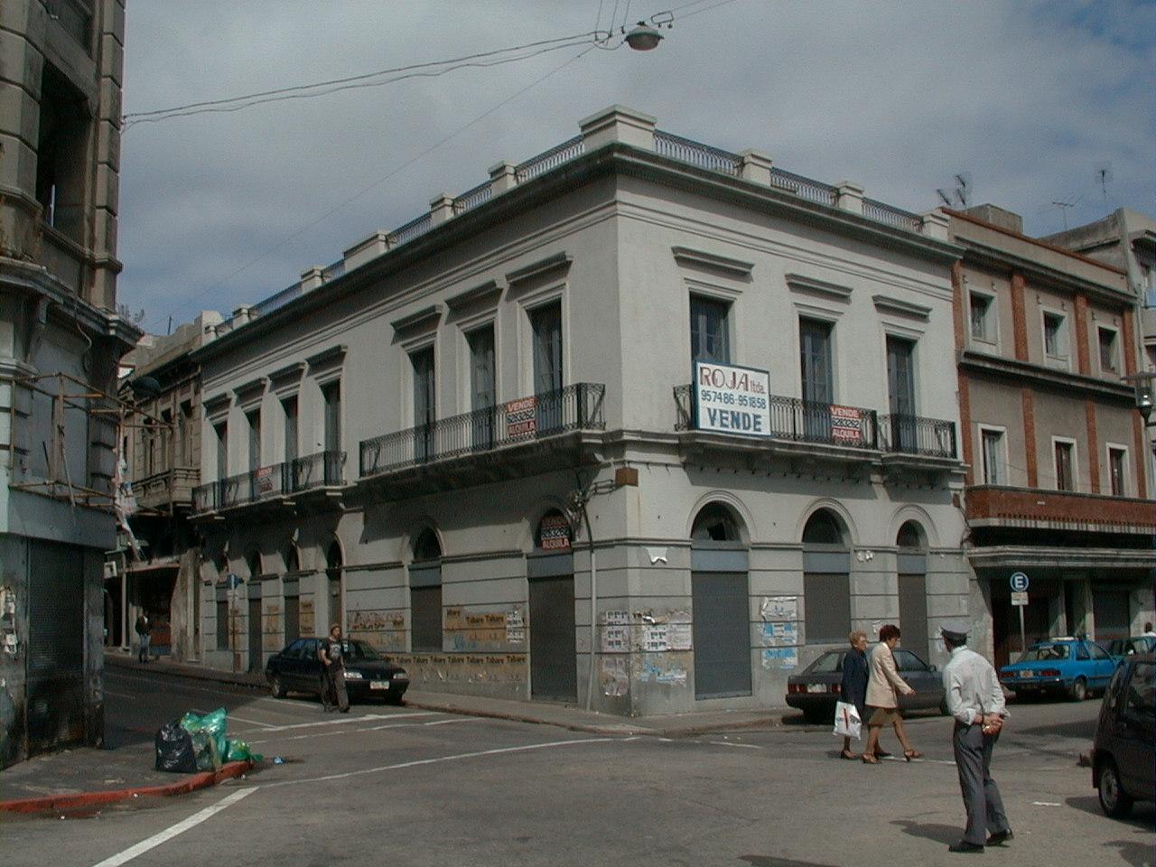 Edificio originalmente destinado a vivienda y comercio, construido a mediados del siglo XIX. Ubicado en la esquina de Pérez Castellano y Piedras, que enfrenta al Mercado del Puerto. Originalmente desarrollaba locales comerciales en planta baja y dos viviendas en el primer piso. Fue reciclado en el año 1993 con destino comercial - administrativo. Su fachada se define por un ritmo de aberturas adinteladas en el nivel superior donde destacan los guardapolvos, y la herrería de los balcones y el pretil. La planta baja presenta aberturas en arco de medio punto y revoque almohadillado. Integra un área de impotante valor testimonial, encontrándose en buen estado de conservación.