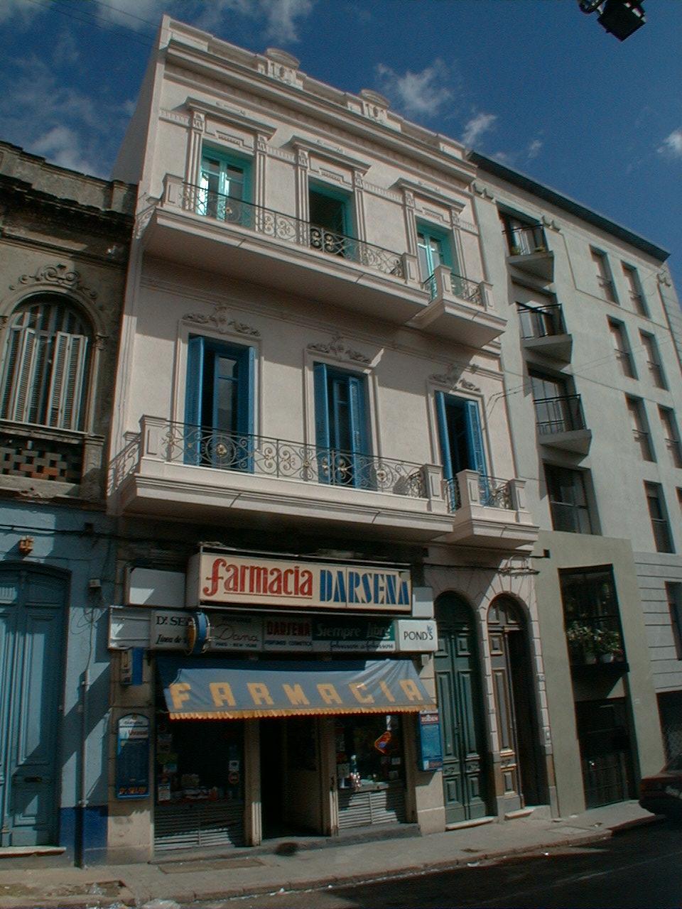 Edificio de vivienda con planta baja comercial de principios del siglo XX. Se desarrolla en tres niveles y corredor lateral que da acceso a apartamentos al fondo. Destaca el tratamiento ornamental de su fachada y los balcones de herrería. Contribuye a conformar un entorno de valor testimonial sobre la calle Pérez Castellano, próximo al Mercado del Puerto. Se encuentra en buen estado de conservación.