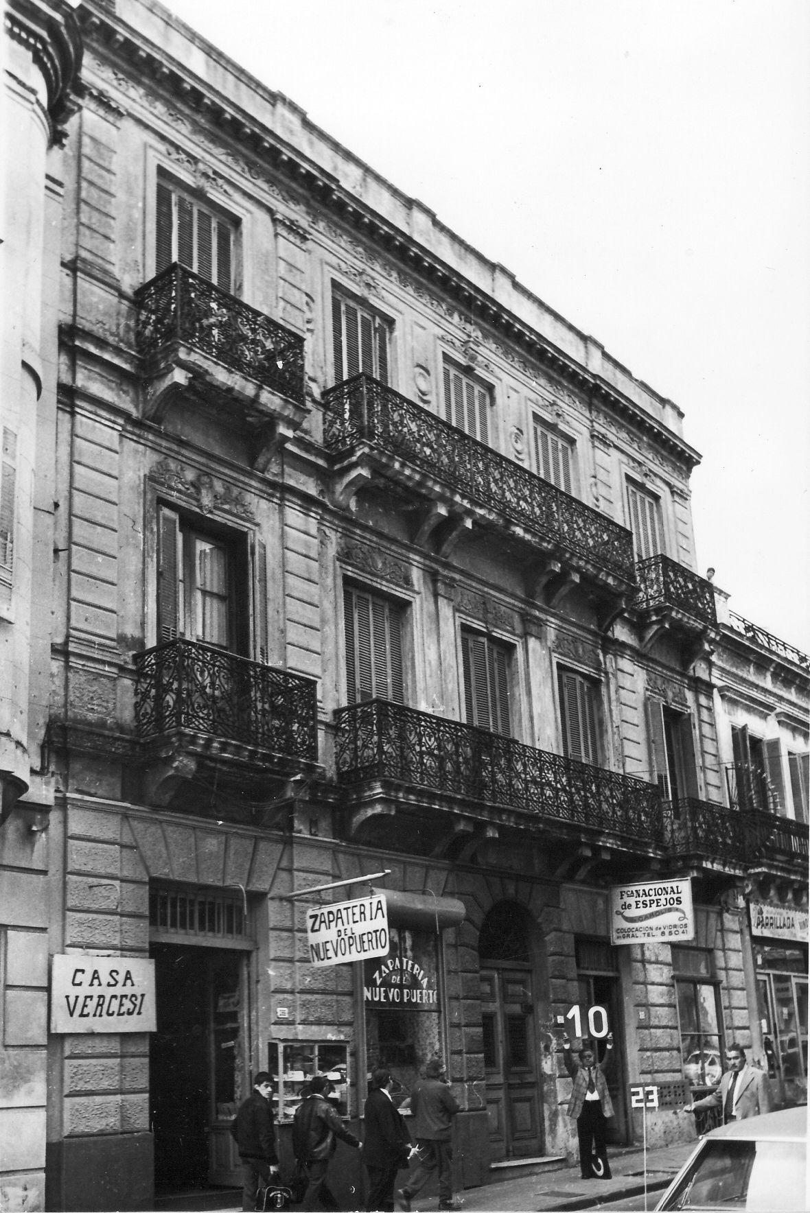 Padrón con frente a las calles Yacaré y Piedras, comprendiendo dos edificios de renta que datan de mediados y fines del siglo XIX respectivamente. El edificio con frente a la calle Piedras destaca por su volumetría y buen estado de conservación. Reciclado para seis oficinas conserva su fachada original, la cual recurre a elementos compositivos frecuentes en la arquitectura decimonónica: buñado en forma de pilastras que recorren todos los niveles, balcones de herrería, y decoración aplicada sobre los dinteles. Se encuentra en buen estado de conservación.