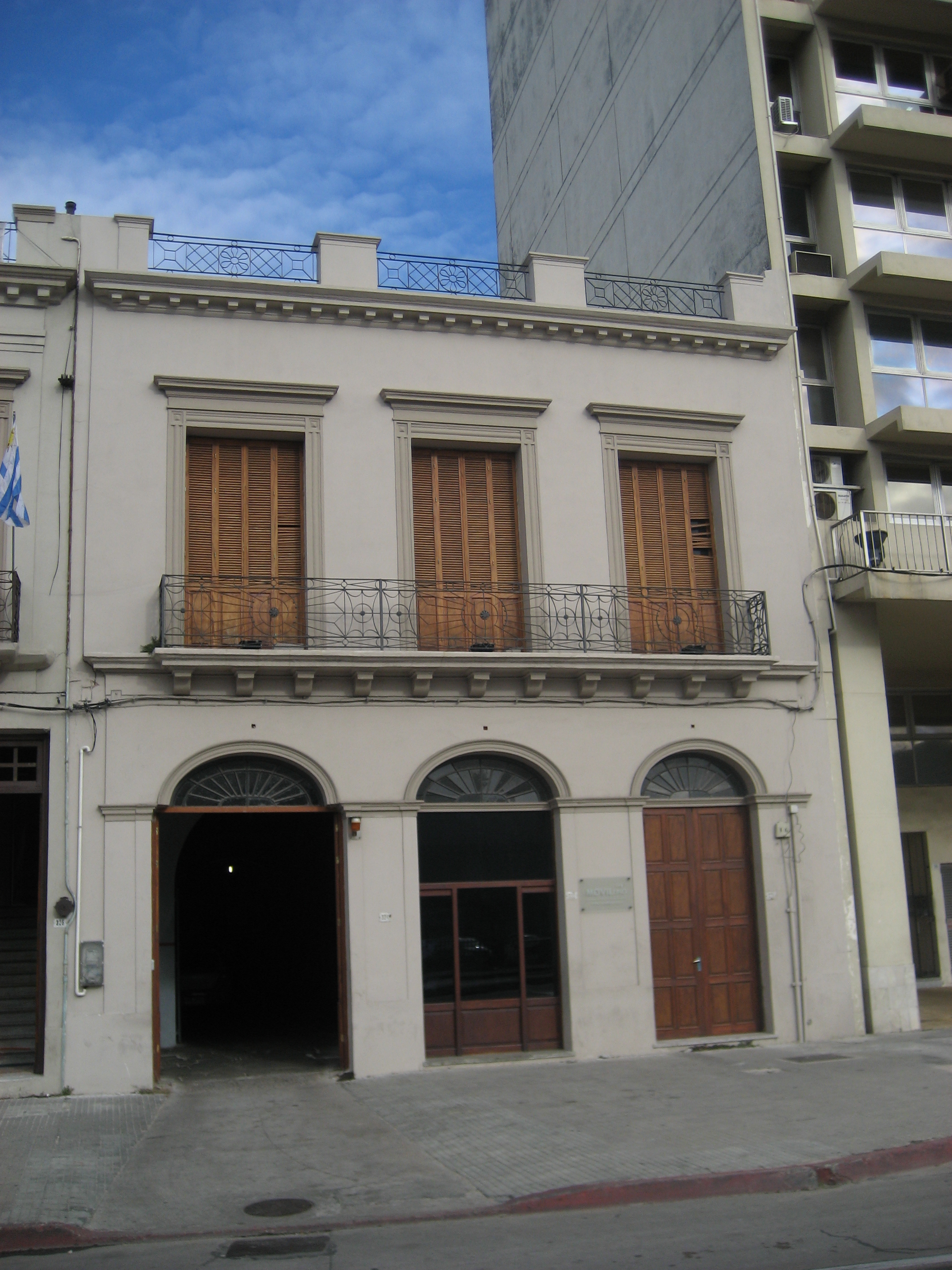 Antigua vivienda del tipo colonial de patios, construida en la primera mitad del siglo XIX sobre la rambla portuaria. El edificio mantiene gran parte de sus elementos originales, su sistema constructivo, sus revestimientos y estructura de patios. La fachada mantiene la disposición original conservando aún las barandas de hierro de los balcones y el pretil. Presenta como peculiaridad lucetas en los tímpanos ovalados de las aberturas de planta baja, en tanto en planta alta los vanos son adintelados con guardapolvo y chambranas rectos. El edificio integra un tramo que presenta ejemplos patrimonialmente significativos, especialmente en los padrones 2843 y 416235, que refuerzan su valor debido a la apertura visual generada por la rambla a la que enfrentan.