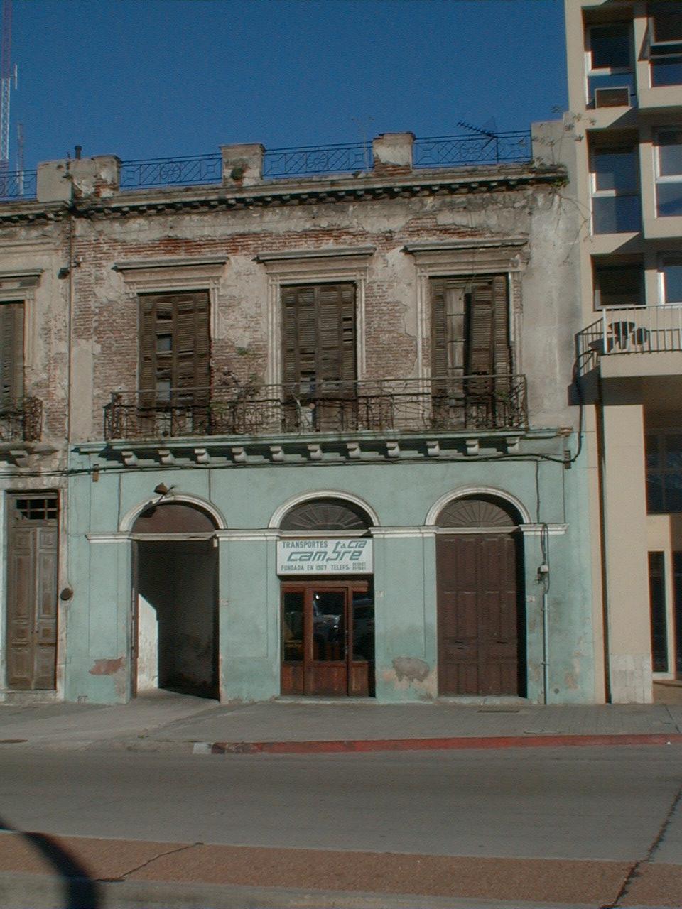 Antigua vivienda del tipo colonial de patios, construida en la primera mitad del siglo XIX sobre la rambla portuaria. El edificio mantiene gran parte de sus elementos originales, su sistema constructivo, sus revestimientos y estructura de patios. La fachada mantiene la disposición original conservando aún las barandas de hierro de los balcones y el pretil. Presenta como peculiaridad lucetas en los tímpanos ovalados de las aberturas de planta baja, en tanto en planta alta los vanos son adintelados con guardapolvo y chambranas rectos. El edificio integra un tramo que presenta ejemplos patrimonialmente significativos, especialmente en los padrones 2843 y 416235, que refuerzan su valor debido a la apertura visual generada por la rambla a la que enfrentan.