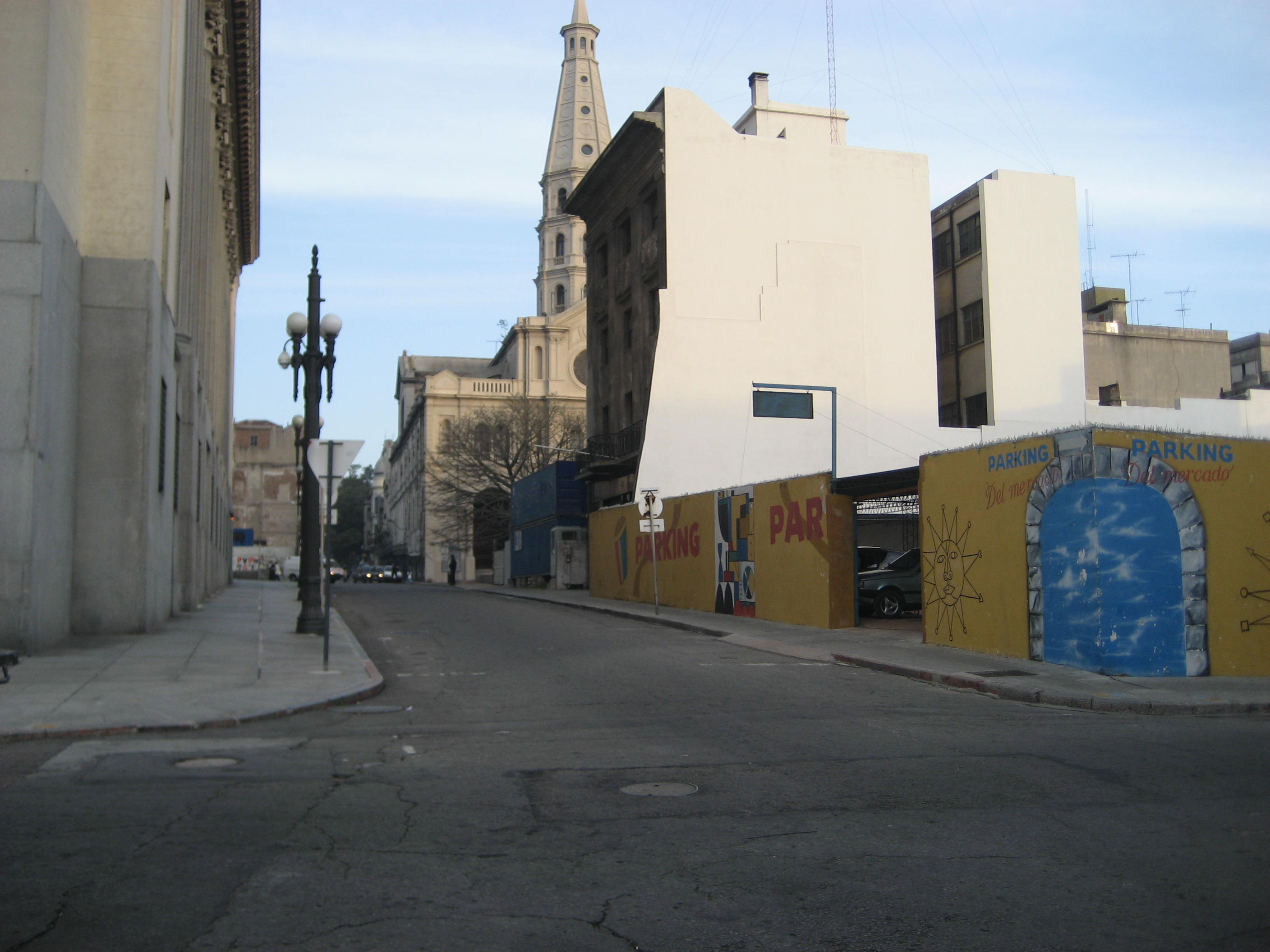 | Urbanística: | Espacio libre utilizado como estacionamiento, que distorsiona aún más la trama urbana muy heterogénea en este tramo. Enmarcado por las medianeras desnudas de sus linderos, el vació se acentúa aún más por su posición en esquina. |