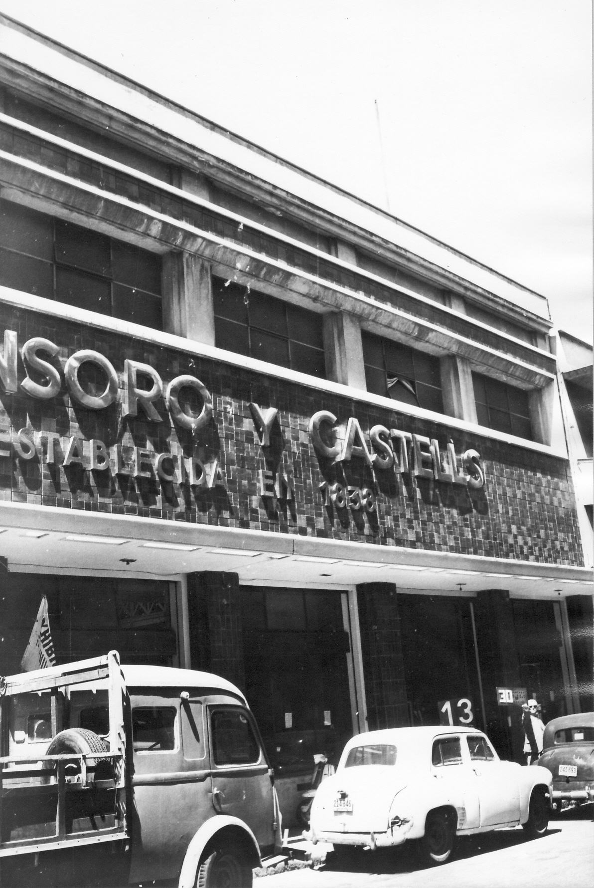 Edificio comercial construido a principios del siglo XX, modificado en 1950 para integrarlo a la construcción del padrón lindero 2862, destinado a casa de remates. Ambos padrones funcionan hoy como estacionamiento, al que se accede desde el padrón 2858 sobre la esquina. La composición de la fachada, de lenguaje racionalista con predominio de la horizontalidad, se resuelve en forma unitaria para los dos padrones.