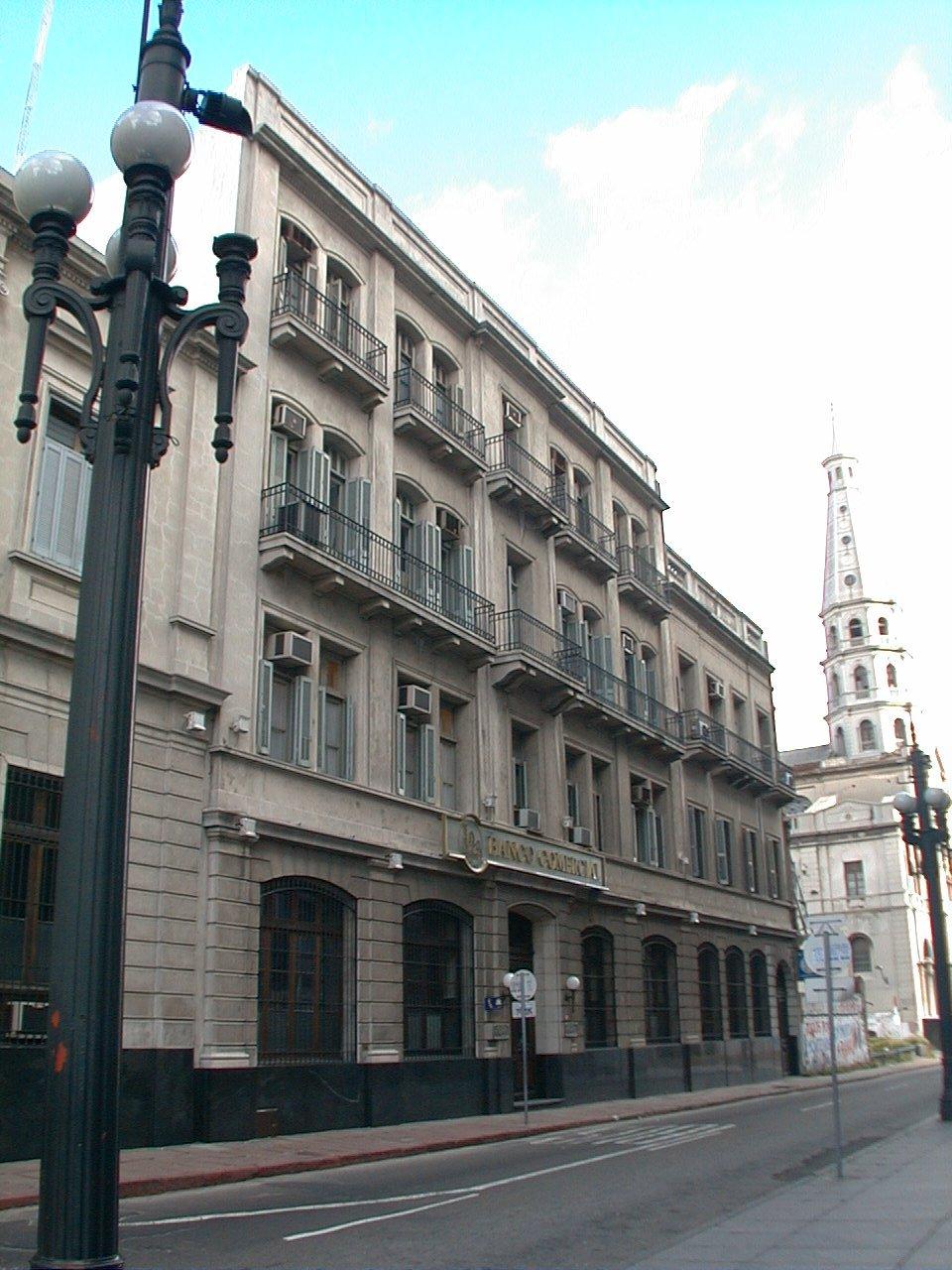 Ubicado en la esquina de Cerrito y Zabala, padrón producto de la unificación de cuatro solares. Sus tres edificaciones de tipología y usos originales diversos, conforman un conjunto con variaciones de altura y una ordenada rítmica a nivel de fachada. Se encuentran unidos funcionalmente lo que permitía desarrollar -en su momento- actividad financiera, como sede de una institución bancaria. Este sector de mayor altura que los contiguos fue construido en las primeras décadas del siglo XX, destinando sus cuatro niveles a oficina con planta baja comercial. Reformado posteriormente fue funcionalmente comunicado con sus linderos y restaurada su fachada. En ella destaca el ritmo de aberturas y los balcones de hierro. El conjunto se encuentra en buena estado de conservación, formando parte de un calificado entorno sobre la calle Cerrito, en un área de la Ciudad Vieja con fuerte perfil financiero.