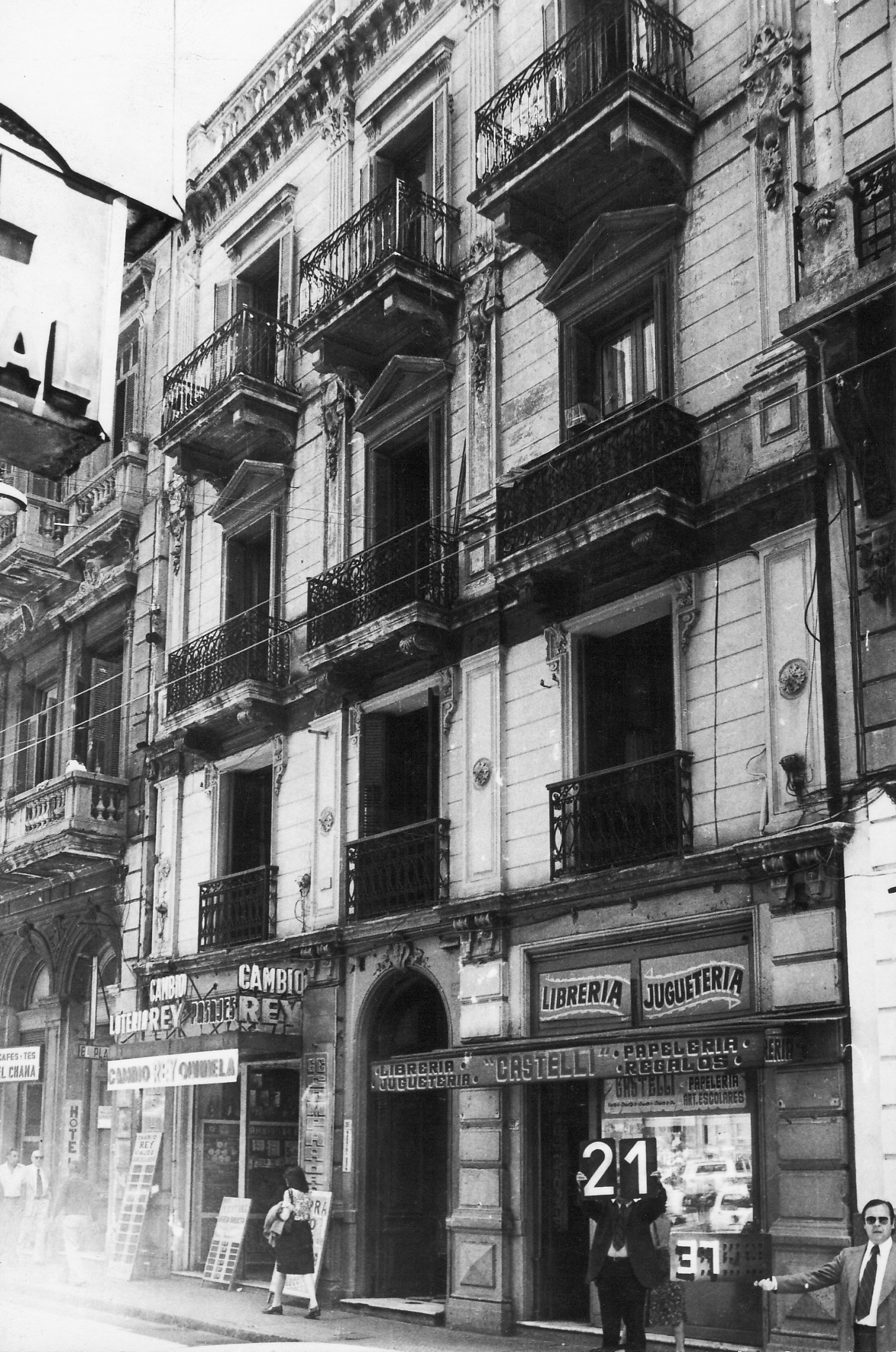 Edificio de vivienda de cuatro niveles con planta baja comercial construido en 1879. Su fachada de inspiración ecléctica, se compone a partir de la simetría de sus elementos, el acceso con arco de medio punto en planta baja, aberturas adinteladas con frontones triangulares en el segundo piso y con guardapolvos rectos en el primero y tercero. Destacan las pilastras molduradas en el fuste en los entrepaños, los balcones con baranda de hierro, el pretil con balaustres y la cornisa sobre modillones. Forma parte de un tramo particularmente homogéneo en cuanto a morfología y valores patrimoniales sobre la calle 25 de Mayo.
