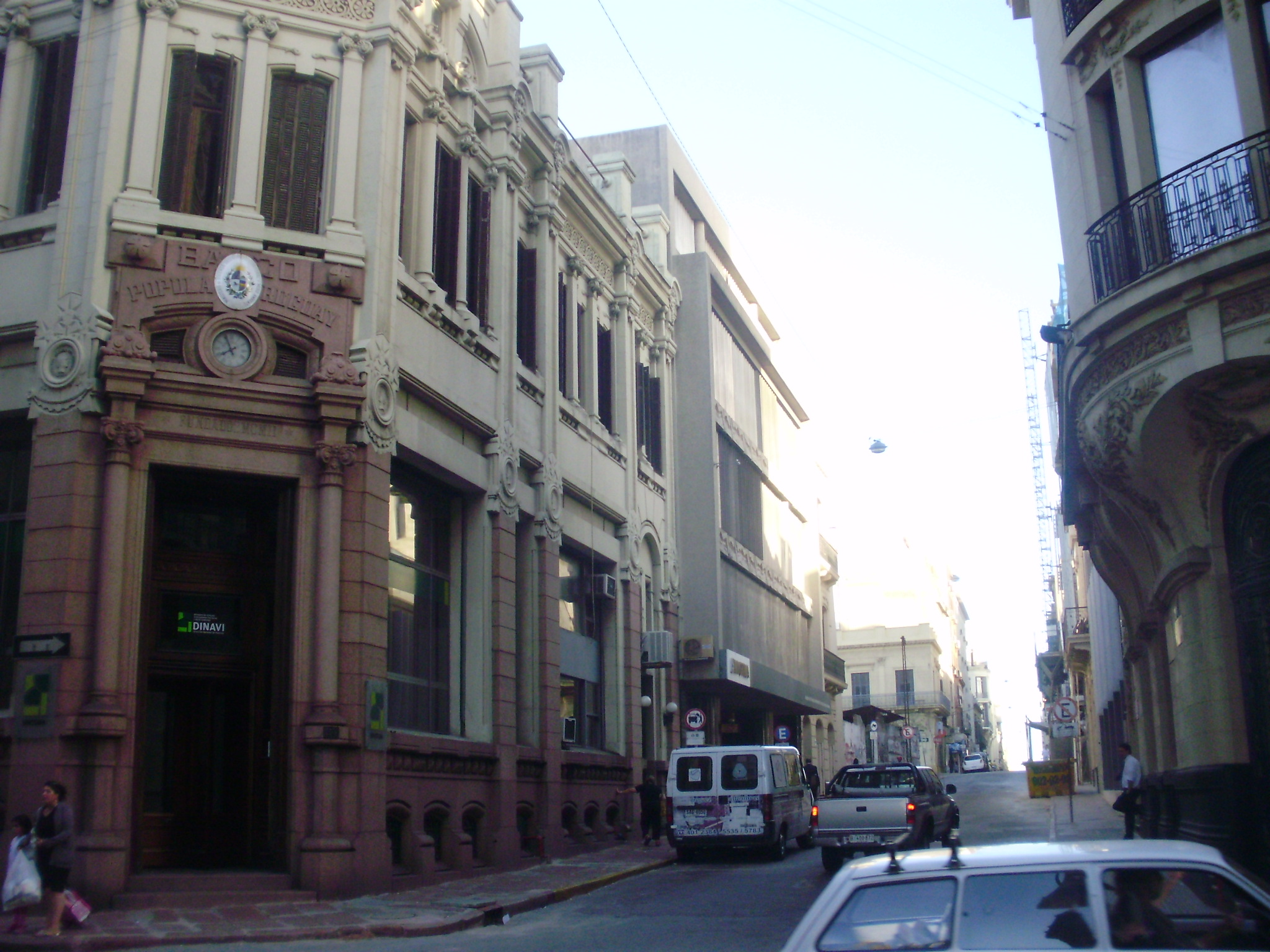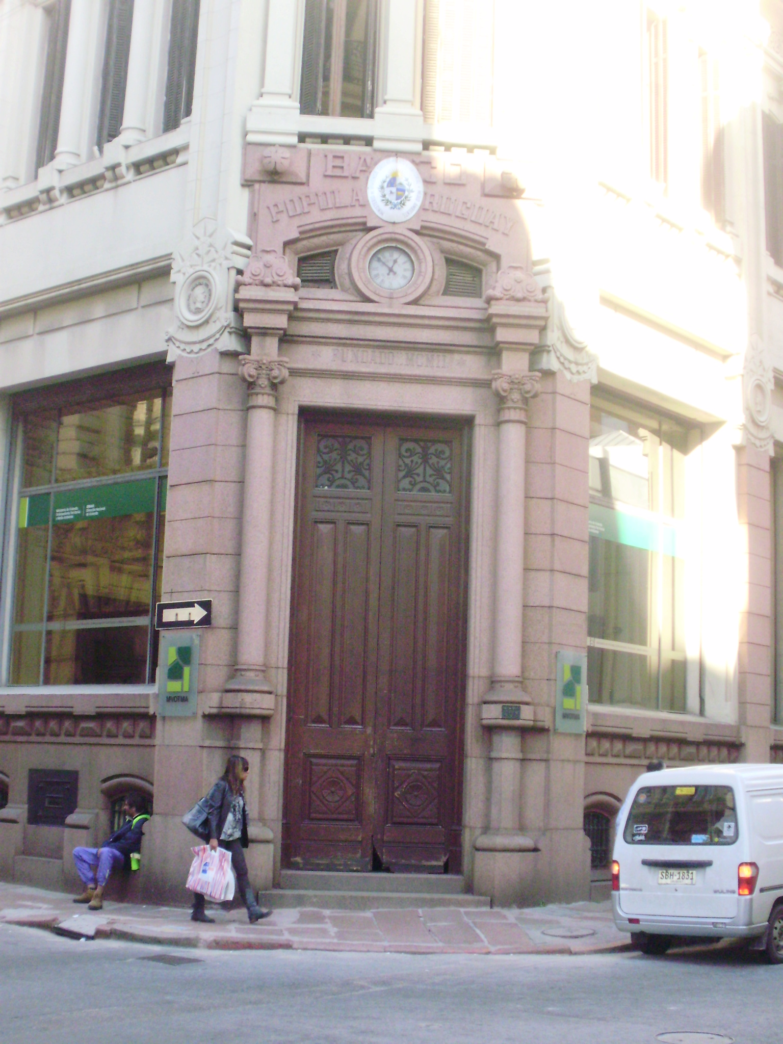 Edificio construido en 1907, desarrollado en dos niveles y subsuelo para albergar el Banco Popular del Uruguay. Su importante volumen resuelve las fachadas con una rica ornamentación, exponente del modernismo catalán; probablemente debido a la nacionalidad de su autor. En 1910 se realizó una ampliación sobre 25 de mayo, conservando los lineamientos del edificio original. Entre 1910 y 1990, -fecha en que se inicia su recuperación para albergar las oficinas del MVOTMA- sufrió alteraciones interiores y de fachada a pesar de las cuales conserva sus características esenciales. El edificio contribuye a conformar una de las esquinas más destacadas de la Ciudad Vieja. Su estado de conservación es bueno.