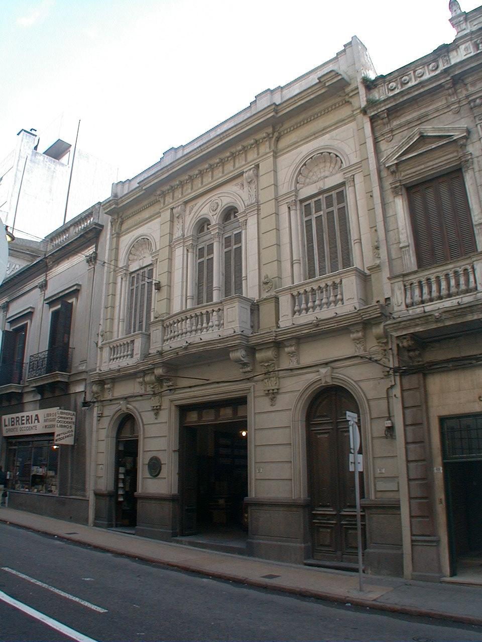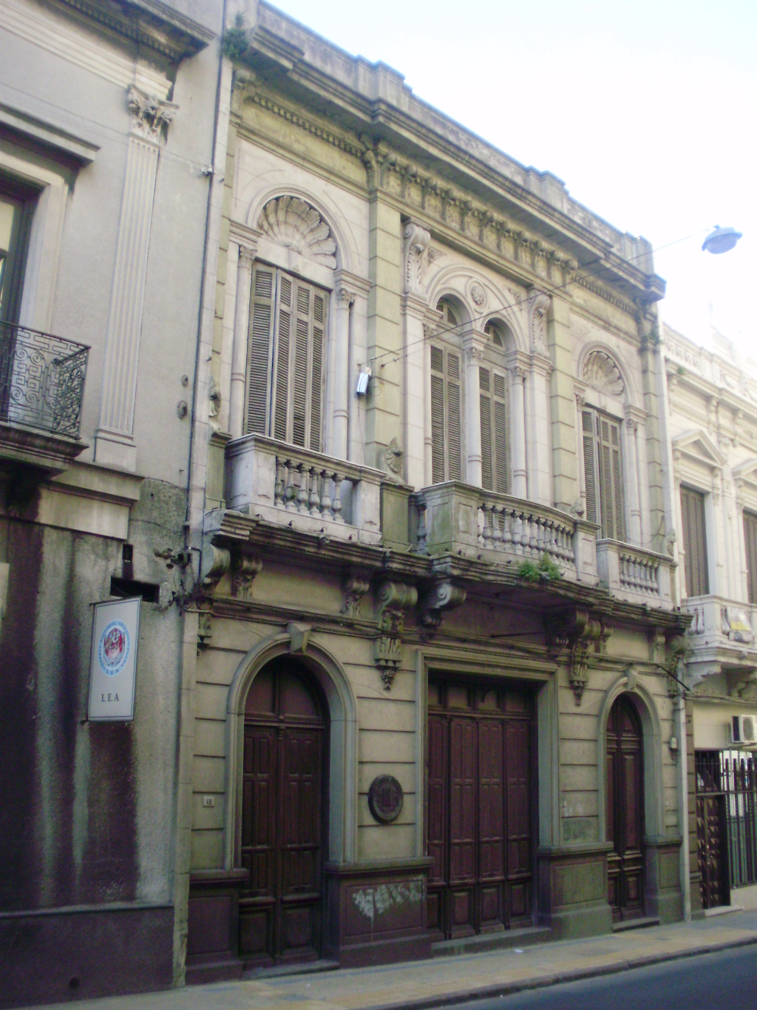 Edificio de vivienda con planta baja comercial construido a fines del siglo XIX. Se desarrolla en dos niveles, encontrándose actualmente desocupado. Su fachada simétrica de lineamientos eclécticos, presenta un basamento almohadillado con zócalo de granito y una planta alta de rica ornamentación. Destaca en esta última, el tratamiento de aberturas enmarcadas entre columnas corintias, siendo adinteladas con arcos de medio punto que encierran tímpanos cóncavos de decoración orgánica las laterales, en tanto, en la central, un guardapolvo ovalado enmarca una abertura con parteluz. Presenta además balcones con balaustrada, pilastras, modillones y una contundente cornisa. El edificio se encuentra en buen estado de conservación.