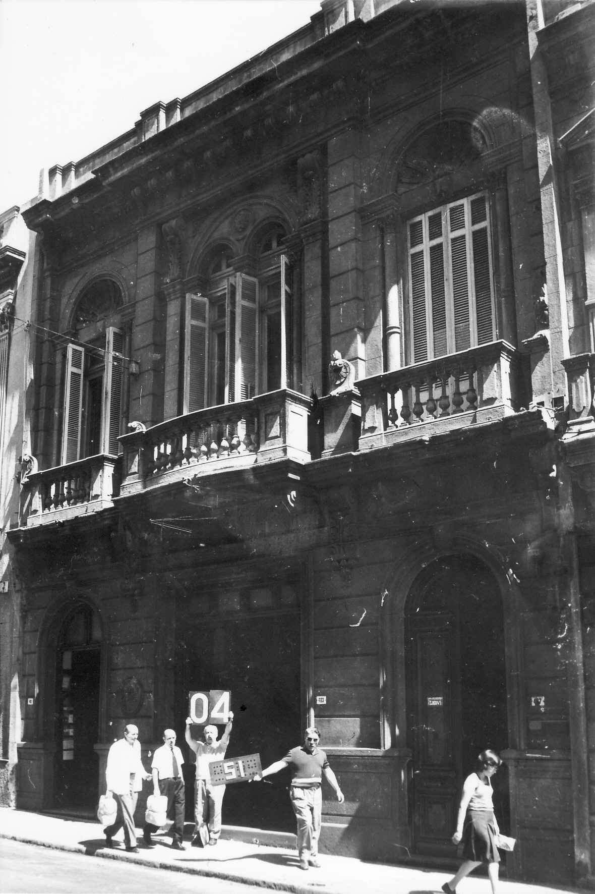 Edificio de vivienda con planta baja comercial construido a fines del siglo XIX. Se desarrolla en dos niveles, encontrándose actualmente desocupado. Su fachada simétrica de lineamientos eclécticos, presenta un basamento almohadillado con zócalo de granito y una planta alta de rica ornamentación. Destaca en esta última, el tratamiento de aberturas enmarcadas entre columnas corintias, siendo adinteladas con arcos de medio punto que encierran tímpanos cóncavos de decoración orgánica las laterales, en tanto, en la central, un guardapolvo ovalado enmarca una abertura con parteluz. Presenta además balcones con balaustrada, pilastras, modillones y una contundente cornisa. El edificio se encuentra en buen estado de conservación.