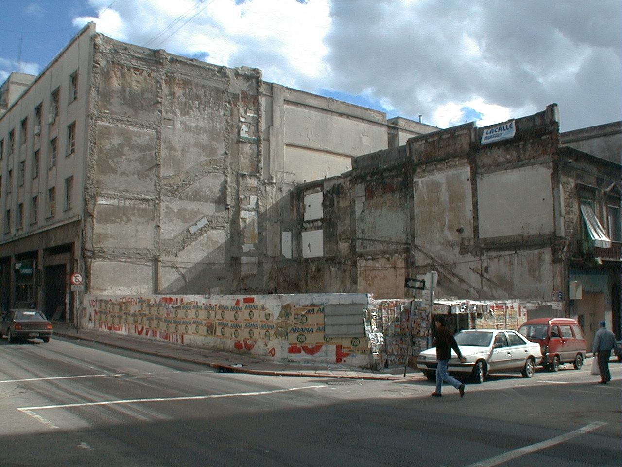 | Urbanística: | Sobre calle Treinta y Tres el edificio, aprovechando la diferencia de alturas y las características particulares de su lindero (subestación de UTE), transforma su medianera en fachada. Sobre 25 de Mayo dialoga correctamente con los edificios modernos de su entorno mediante su imagen contemporánea, en particular con la renovada fachada de muro cortina del edificio ubicado en la esquina en diagonal perteneciente al BROU (Div. Empresas - Ex Banco Brasil). |