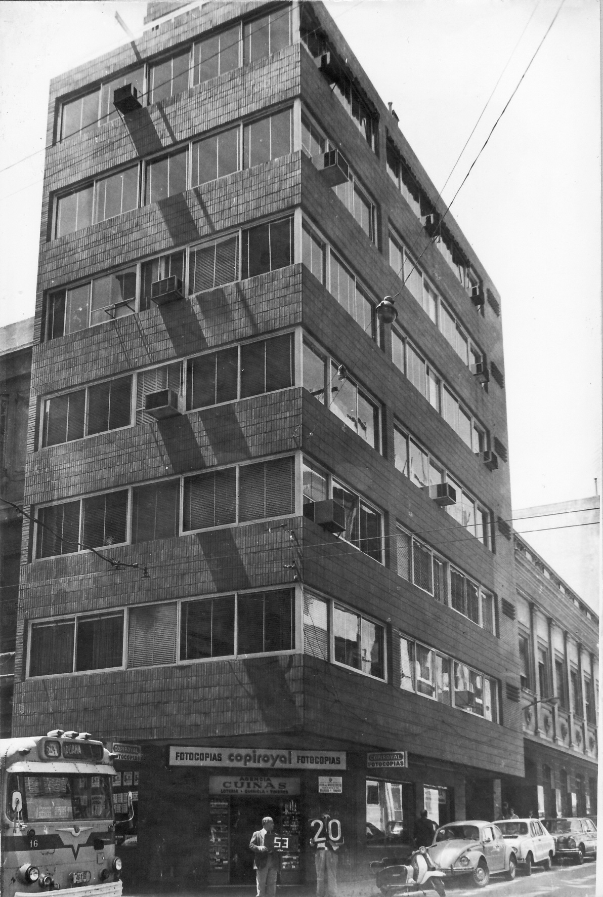 Edificio de propiedad horizontal, de nueve niveles, construido en la década de 1970, para uso de oficinas y planta baja comercial. Su fachada se eleva sobre un basamento en franjas horizontales repetitivas, superficies vidriadas y opacas. En fecha posterior a 1983 se sustituyó el revestimiento de ladrillo visto por plaquetas de mármol. Se ve afectado por la colocación de aparatos de aire acondicionado no previstos. Se encuentra en buen estado de conservación.