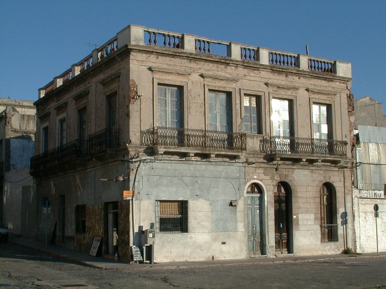 Edificio de vivienda construido en la segunda mitad del siglo XIX. El volumen de dos niveles define la esquina respondiendo de forma similar hacia ambas calles. Su fachada ecléctica, remite formalmente a modalidades propias del Neoclasicismo Español, evidenciadas en el severo tratamiento ornamental, compuesto básicamente por chambranas y guardapolvos rectos, buñado en falsas pilastras y encadenado de la esquina. Destacan los balcones de herrería y la balaustrada de terracota del pretil parcialmente conservada. Actualmente la construcción se encuentra en muy mal estado de conservación, con sectores ruinosos, presentando negativas alteraciones en la fachada de planta baja, producto de sucesivas reformas. Pese a ello, remata un tramo destacado sobre la Rambla, que se extiende hasta La Casa de los Ximénez y las Bóvedas.