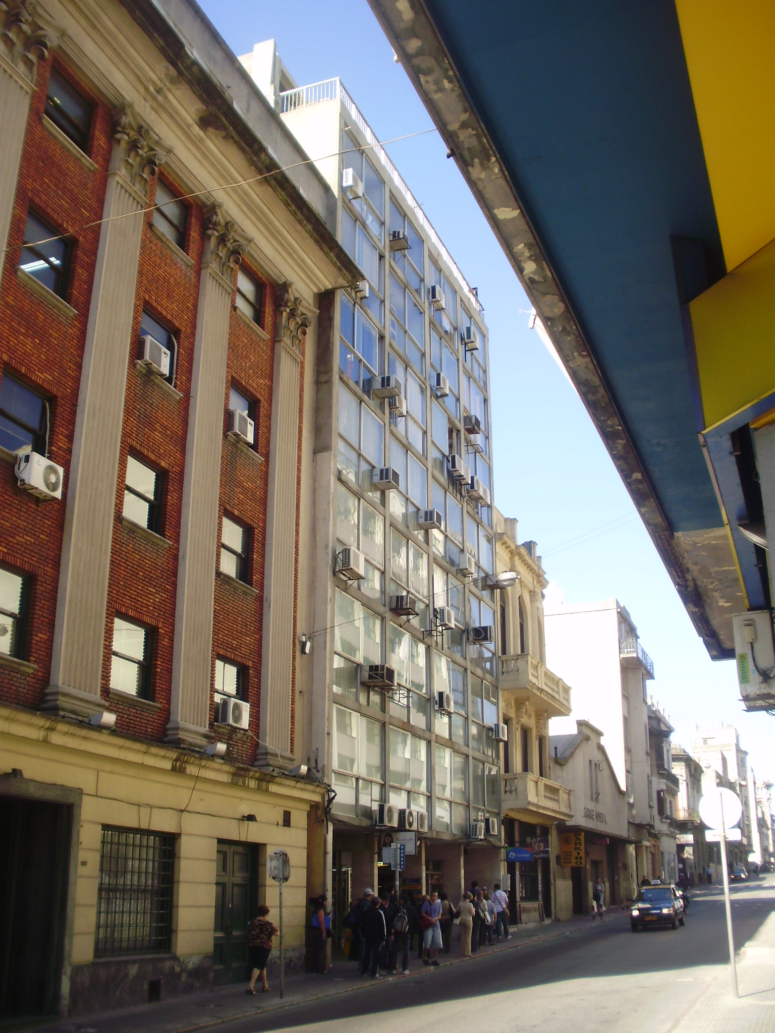 Edificio de propiedad horizontal construido en la década de 1980. Se desarrolla en nueve niveles, el último de los cuales se retira de la línea de edificación. Dispone tres locales comerciales en planta baja, y treinta y dos unidades de oficina en los niveles superiores. Su fachada recurre a un lenguaje racionalista próximo al Estilo Internacional con curtain-wall, que se ve afectado por la presencia de aparatos de acondicionamiento térmico no previstos. Por altura y lenguaje, resulta ajeno al área. Su estado de conservación es bueno, habiéndose realizado obras de mantenimiento.