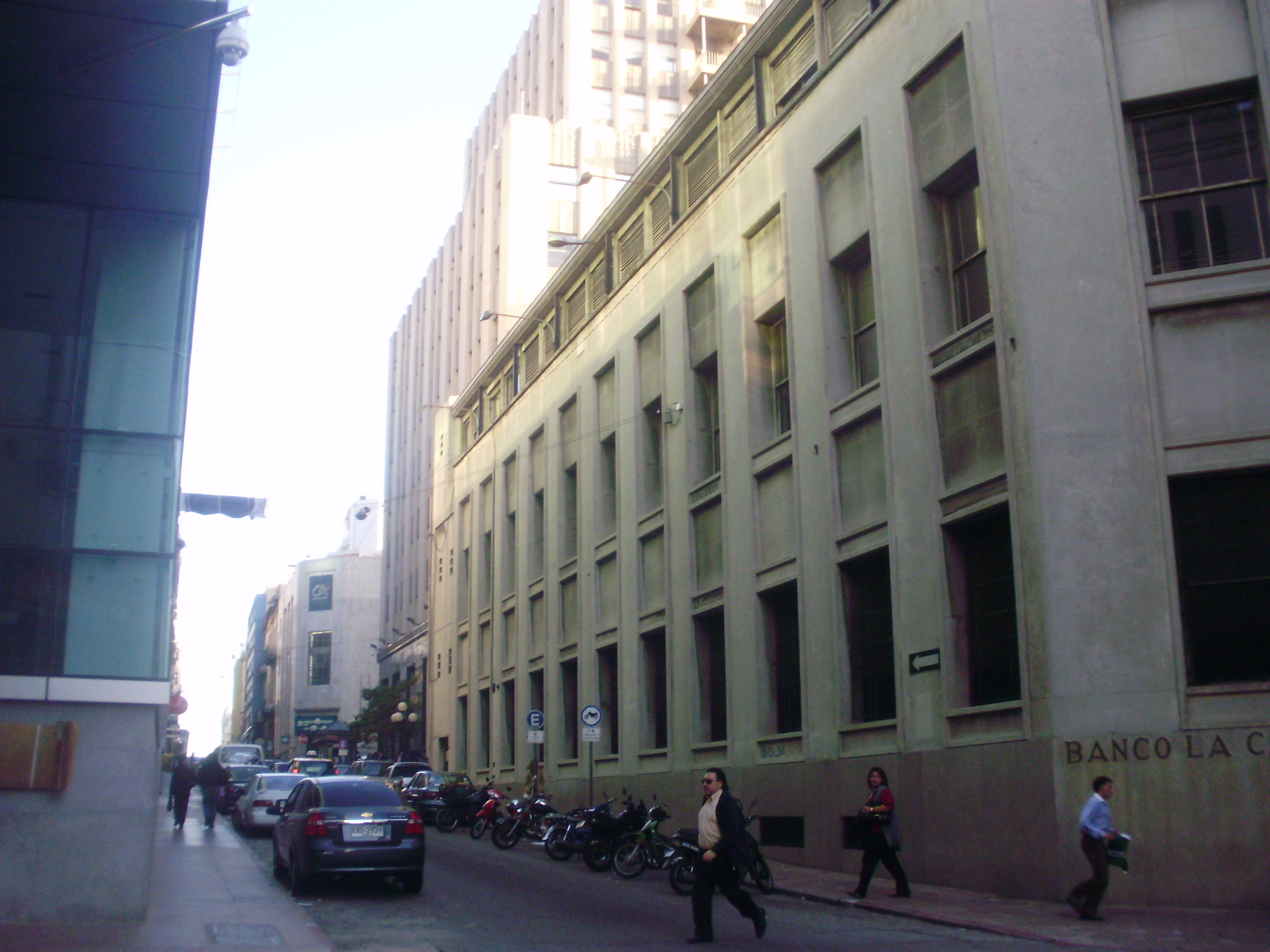 | Urbanística: | Edificio altimétrica y volumétricamente bien integrado a su entorno urbano inmediato, de carácter predominantemente terciario. Su sobria fachada de filiación racionalista prescinde de todo detalle ornamental, generando una imagen de arquitectura de oficinas recurrente en este sector de la Ciudad Vieja. |