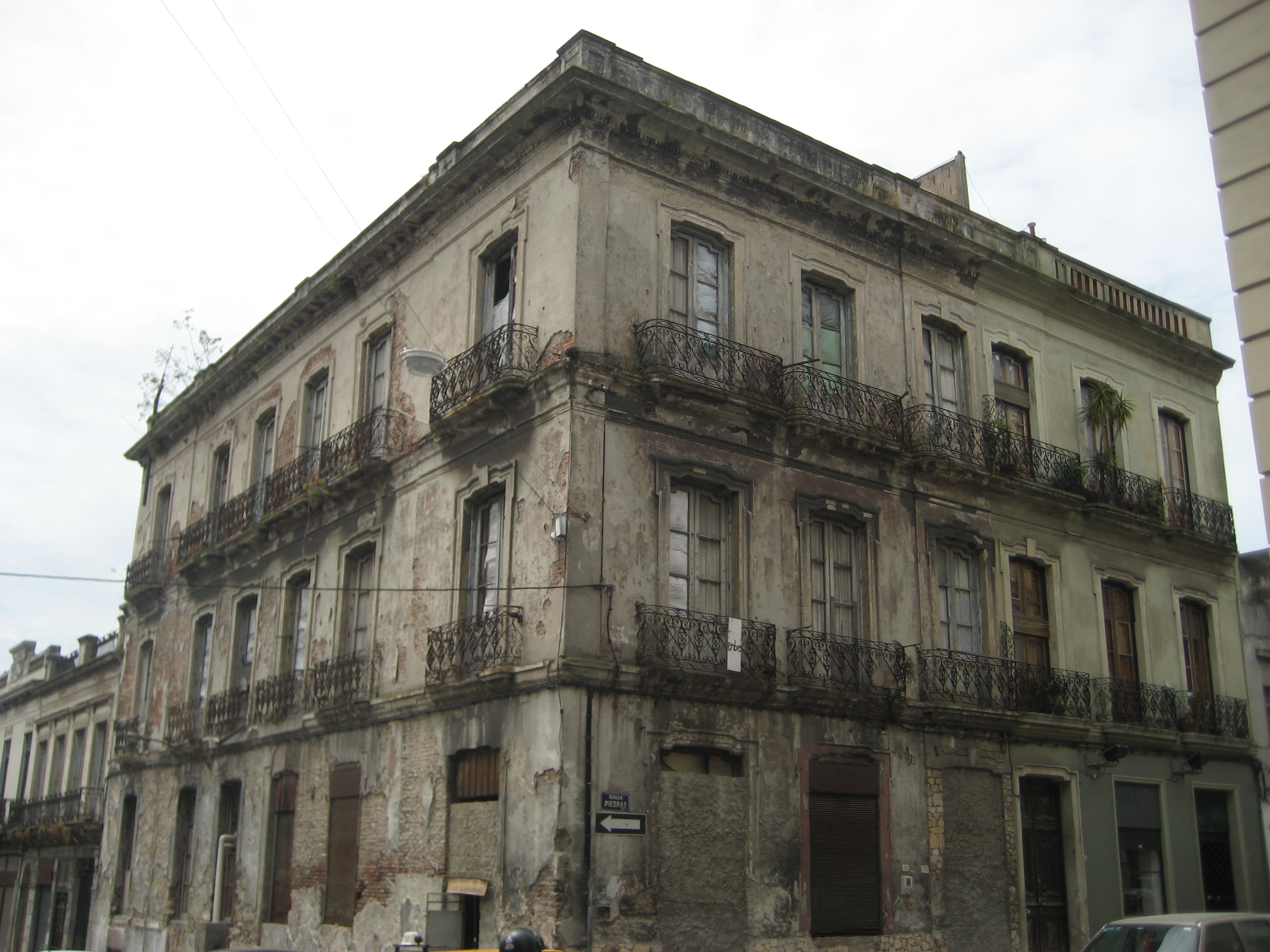 Construcción de fines del siglo XIX, que forma un conjunto con su lindero este. Se trata de un edificio que sobre una planta baja supuestamente dedicada a depósito de granos, albergaba una vivienda unifamiliar en sus dos plantas altas. En el año 1987 se realizó un reciclaje, obteniéndose siete unidades de vivienda y un local en planta baja en el que se aloja una galería de arte. El proyecto conserva elementos originales como la escalera que conecta los tres niveles. Su altura, algo mayor que el resto del tramo al que pertenece, permite leer a los dos padrones como remate del mismo, lo que se reitera en el caso de la denominada Casa del Virrey que enfrenta por la calle Piedras. El edificio contribuye a calificar un entorno de interés aunque hoy en parte degradado. Se encuentra en buen estado de conservación.