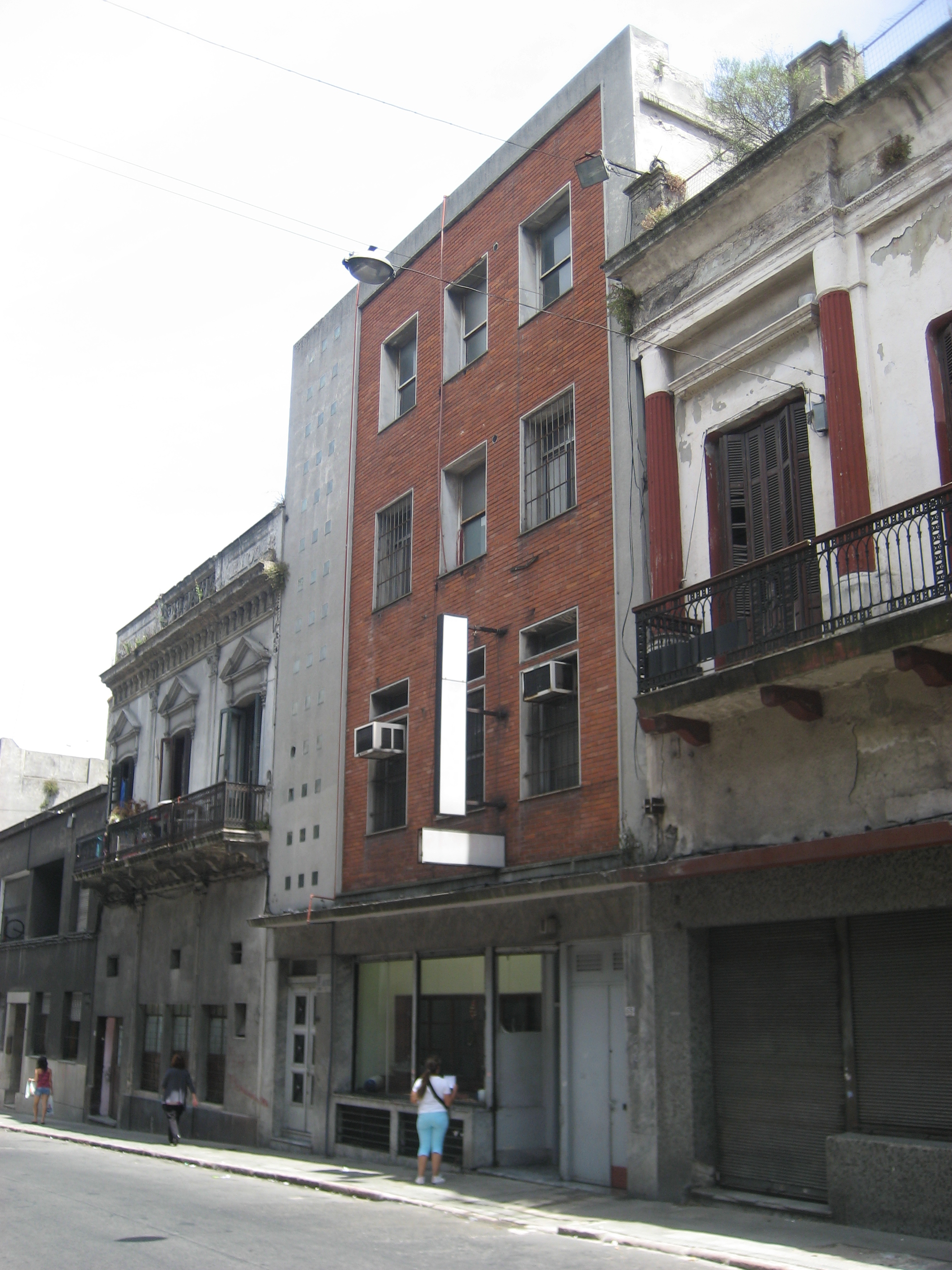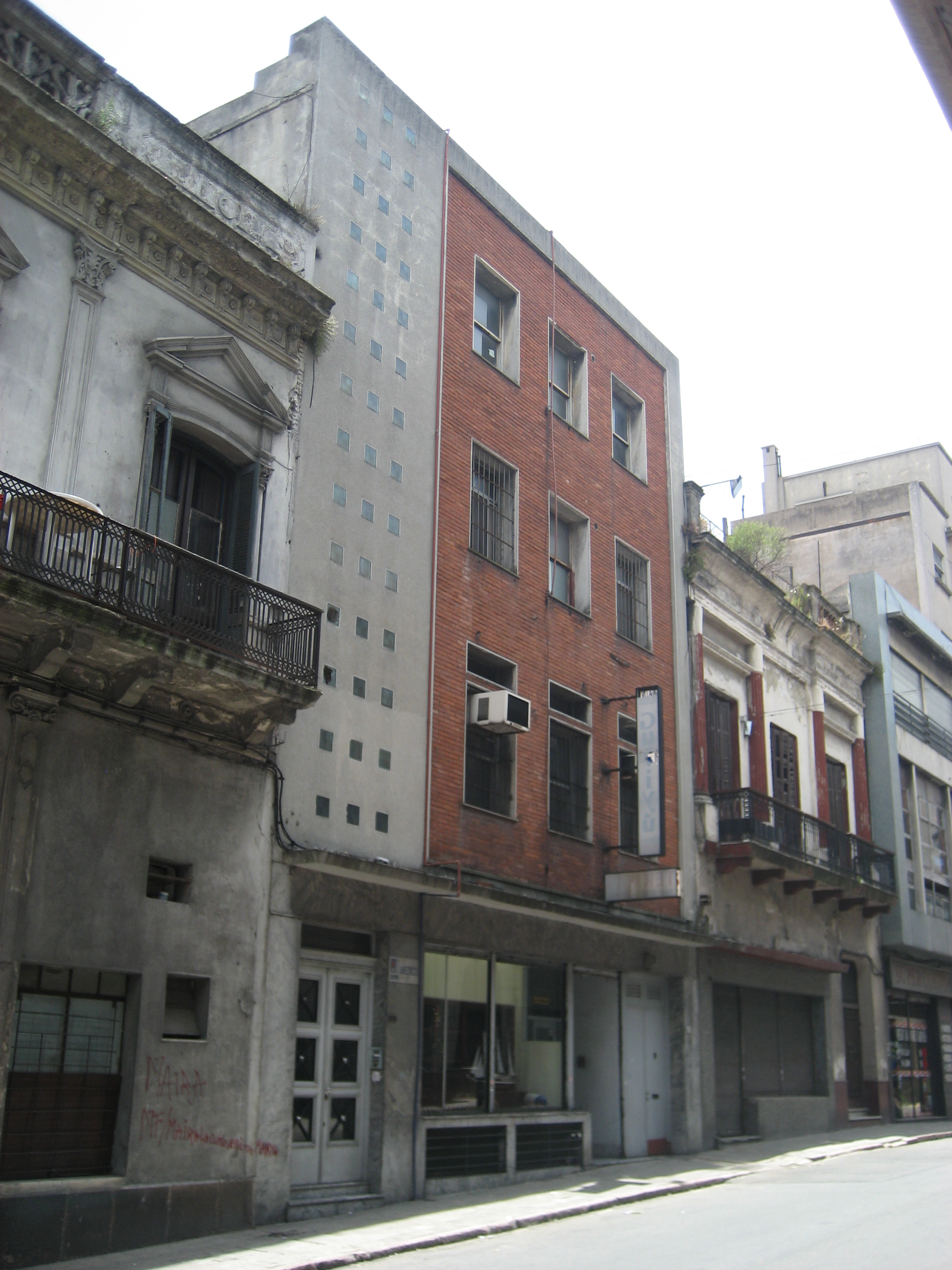 | Arquitectónica: | Edificio sin valores arquitectónicos relevantes, caracterizado por una fachada que en su tratamiento formal y material diferencia la caja de escaleras, expresada a través de un paño revocado y perforado por una serie de cuadrados transparentes, del cuerpo principal revestido de ladrillos. |