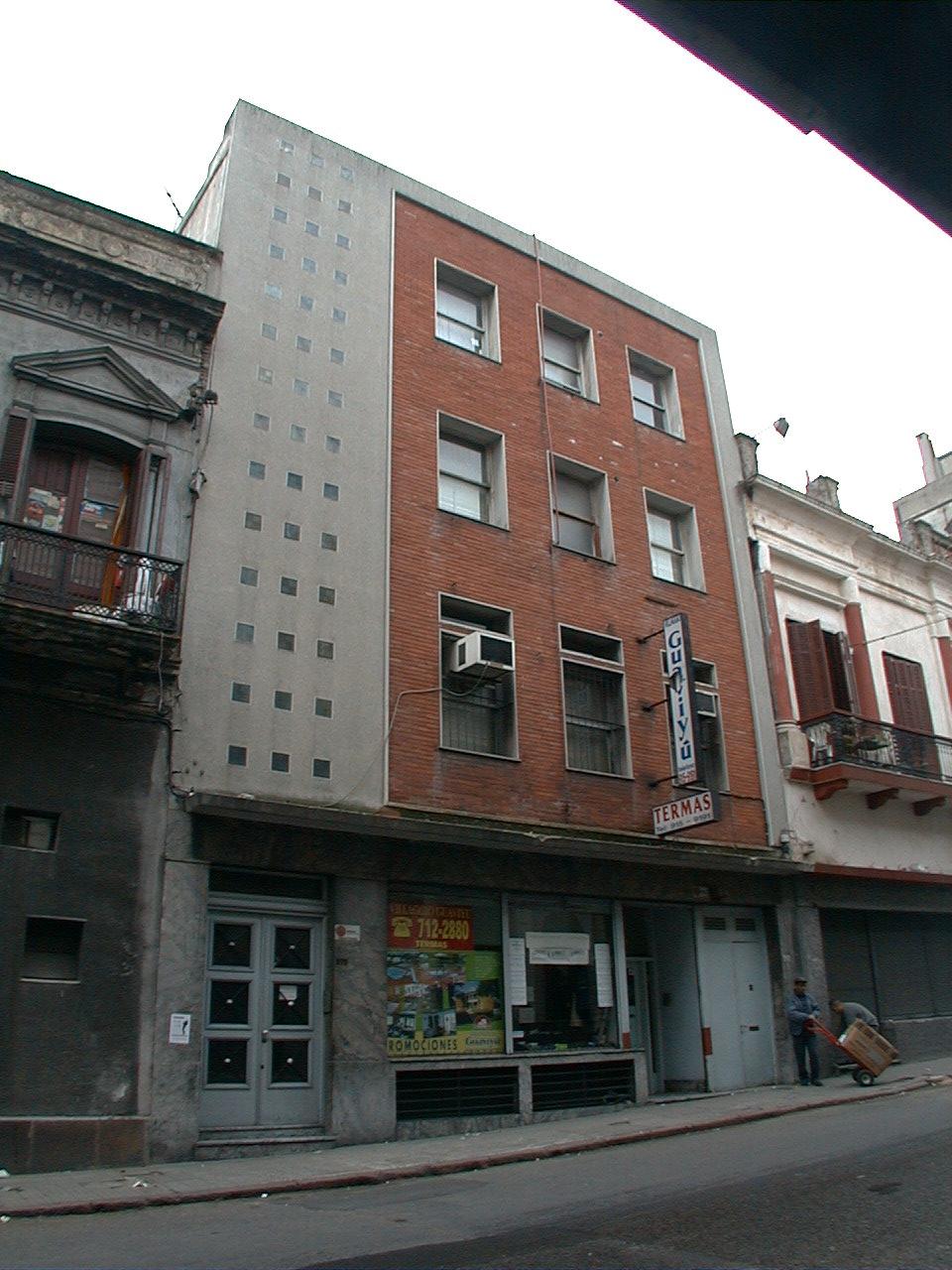 | Arquitectónica: | Edificio sin valores arquitectónicos relevantes, caracterizado por una fachada que en su tratamiento formal y material diferencia la caja de escaleras, expresada a través de un paño revocado y perforado por una serie de cuadrados transparentes, del cuerpo principal revestido de ladrillos. |