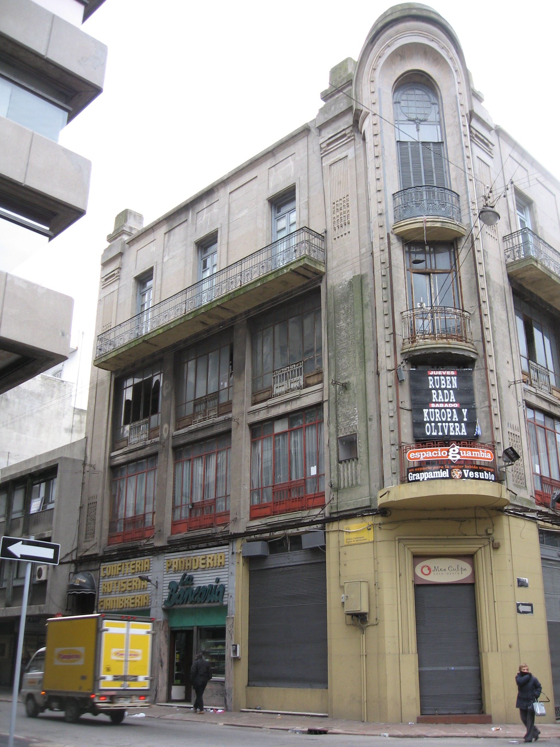 Edificio de principios del siglo XX, se desarrolla en cuatro niveles y subsuelo, destinando originalmente los dos niveles intermedios a oficina y el piso superior a vivienda unifamiliar. Las unidades se asocian en vertical, disponiendo de un acceso independiente para cada una de ellas. El tercer nivel se organiza en torno a un patio central cubierto con claraboya y al cual se accede a través de una escalera y de un ascensor de época. El basamento comercial y los entrepisos de oficinas se expresan mediante amplias aberturas vidriadas y se adopta una imagen más cerrada para el último nivel, correspondiente a la vivienda. La esquina se destaca con una saliente curva que se extiende en los tres niveles superiores. Dicha verticalidad se refuerza en los entrepaños, que presentan relieves de inspiración Art Nouveau. Su fachada se mantiene en regular estado de conservación.