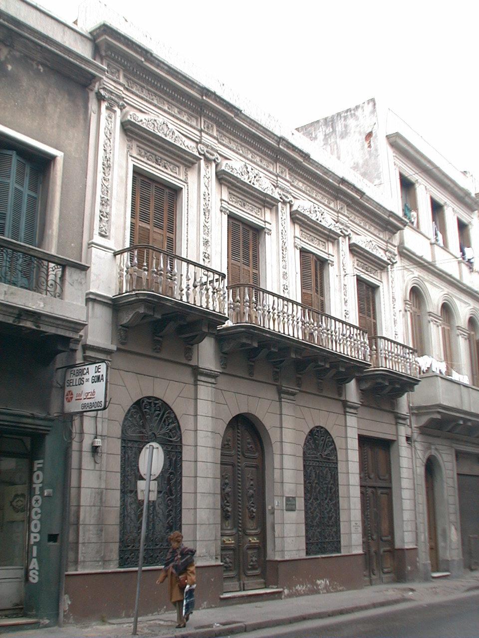 Vivienda burguesa que perteneció a Juan Francisco Giró, constituyente, legislador y presidente de la República. Fue construida en la primera mitad del siglo XIX por su padre. En 1840 fue remodelada y ampliada con proyecto del Ingeniero Carlos Zucchi, quien debido a la envergadura de los trabajos de reforma de la vivienda original es considerado como su autor. Ubicado en un singular predio en forma de martillo, los dos patios principales están recostados contra una de las medianeras, reservando el fondo para el patio secundario, al que se accede a través de una profunda cochera. La fachada, afiliada al eclecticismo historicista, recurre a una gran riqueza ornamental concentrada en el friso, chambranas y pilastras del primer nivel, mientras que la planta baja recibe un tratamiento más austero. Destaca el trabajo artesanal de la herrería y carpintería de puertas, y los singulares balaustres de cristal del balcón. El edificio es propiedad del Ministerio de Educación y Cultura. Es Monumento Histórico Nacional desde 1975.