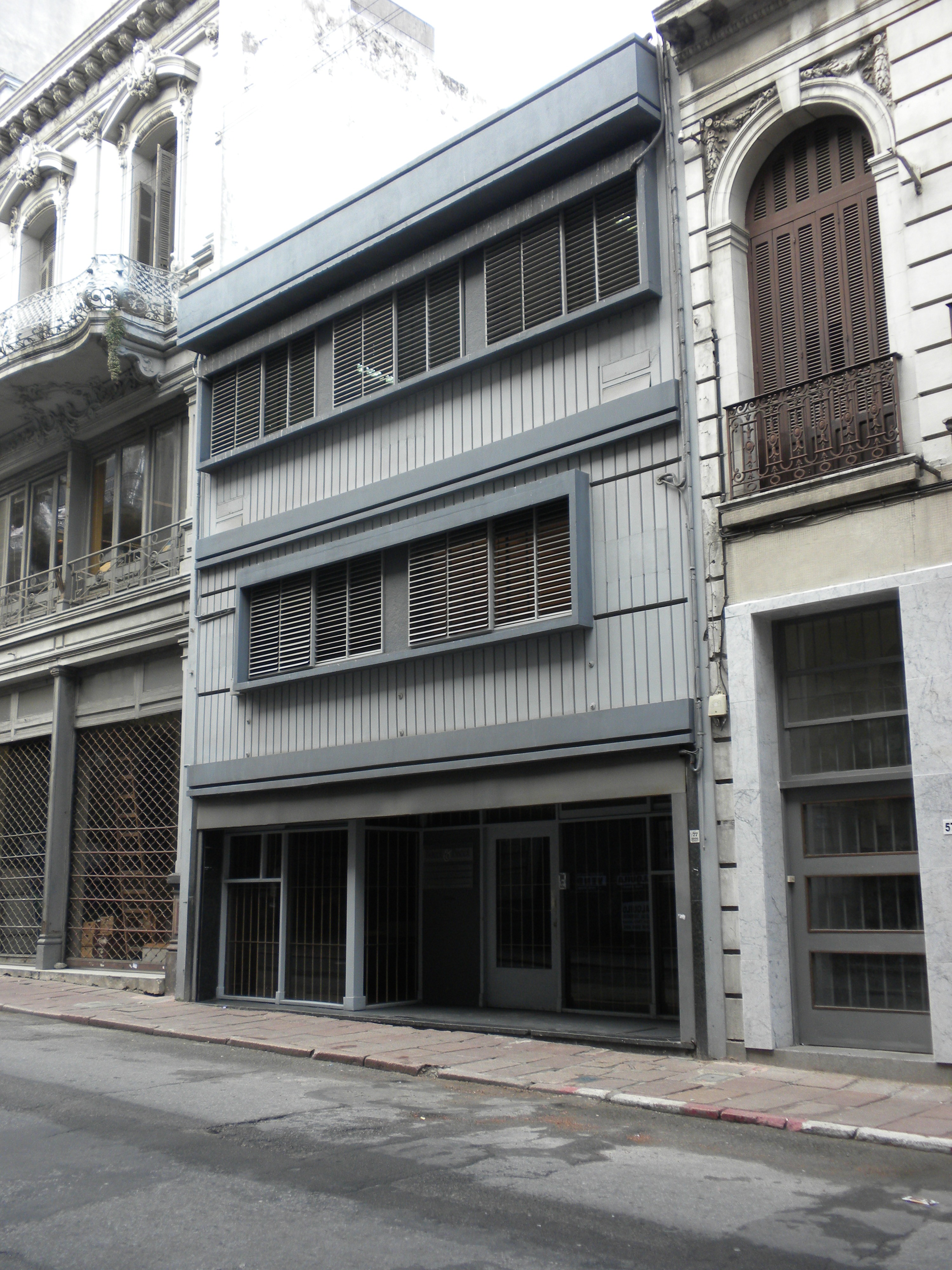 Edificio de dos niveles construido en 1977, concebido para albergar las oficinas de una empresa. Su fachada, de hormigón visto de buena factura, superpone a una planta baja muy permeable, la pesada composición de sus plantas altas. Estas características, y las proporciones predominantemente horizontales de sus vanos, generan una ruptura con el entorno inmediato.