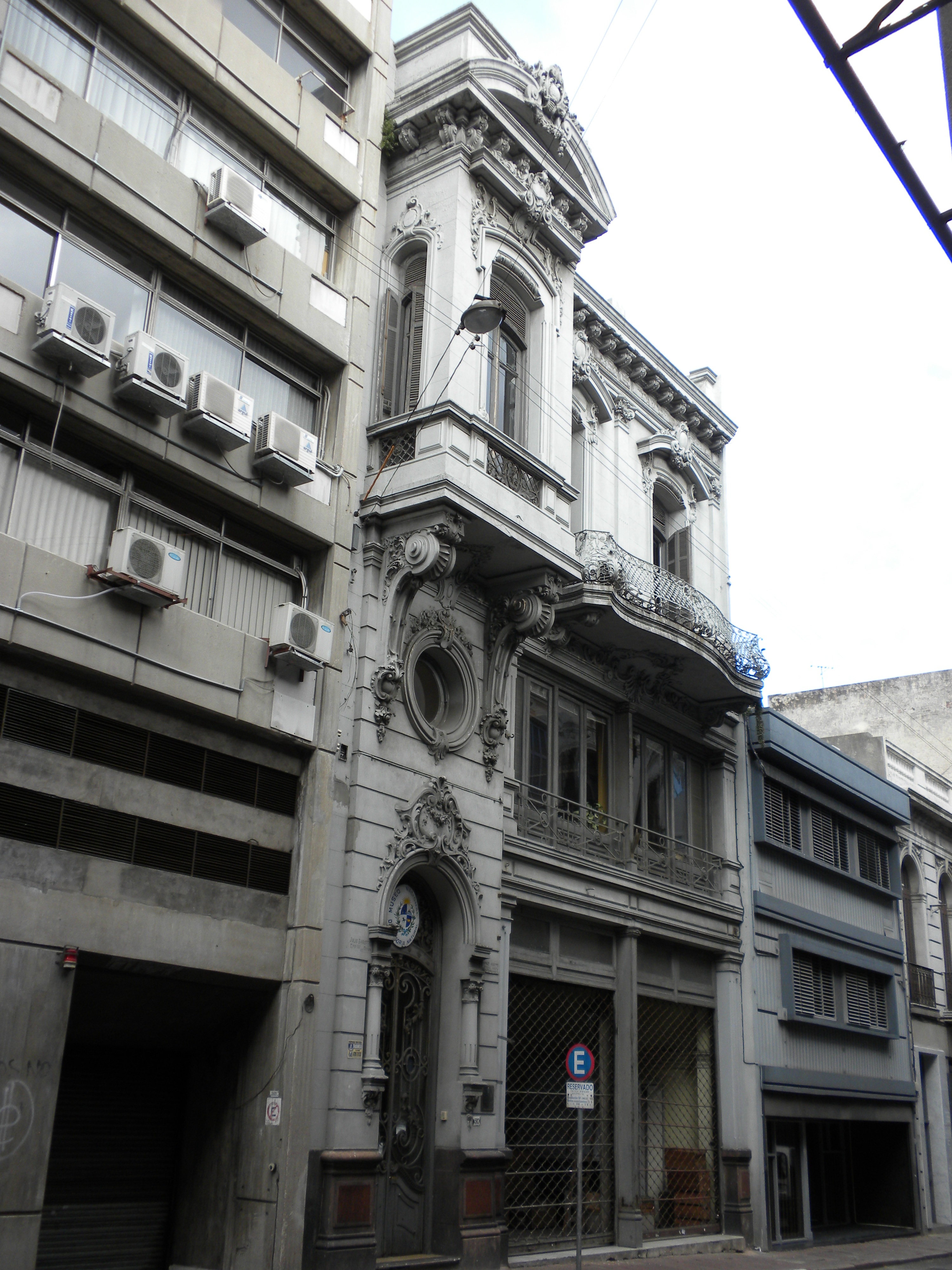 Edificio comercial de principios de siglo XX, con planta alta destinada a vivienda. En su fachada, resuelta a partir de un esquema asimétrico y un repertorio formal allegado al eclecticismo historicista, resalta una planta alta donde se concentra la ornamentación, un balcón curvo y un bow-window ubicado en la misma vertical que el acceso a las plantas altas. El suntuoso interior de la planta alta presenta interés en diferentes elementos donde se destacan yesería, carpintería y pisos así como la espacialidad y tipología de la construcción, con tres patios centrales cerrados con claraboyas. Las plantas originalmente comerciales son grandes naves sostenidas con un sistema de columnas y vigas de hierro fundido e iluminadas en el frente del edificio y un patio posterior (en el caso del subsuelo, sólo este último). El valor de la obra se acrecienta por estar inserta en un tramo de particular interés al cual contribuye a calificar.