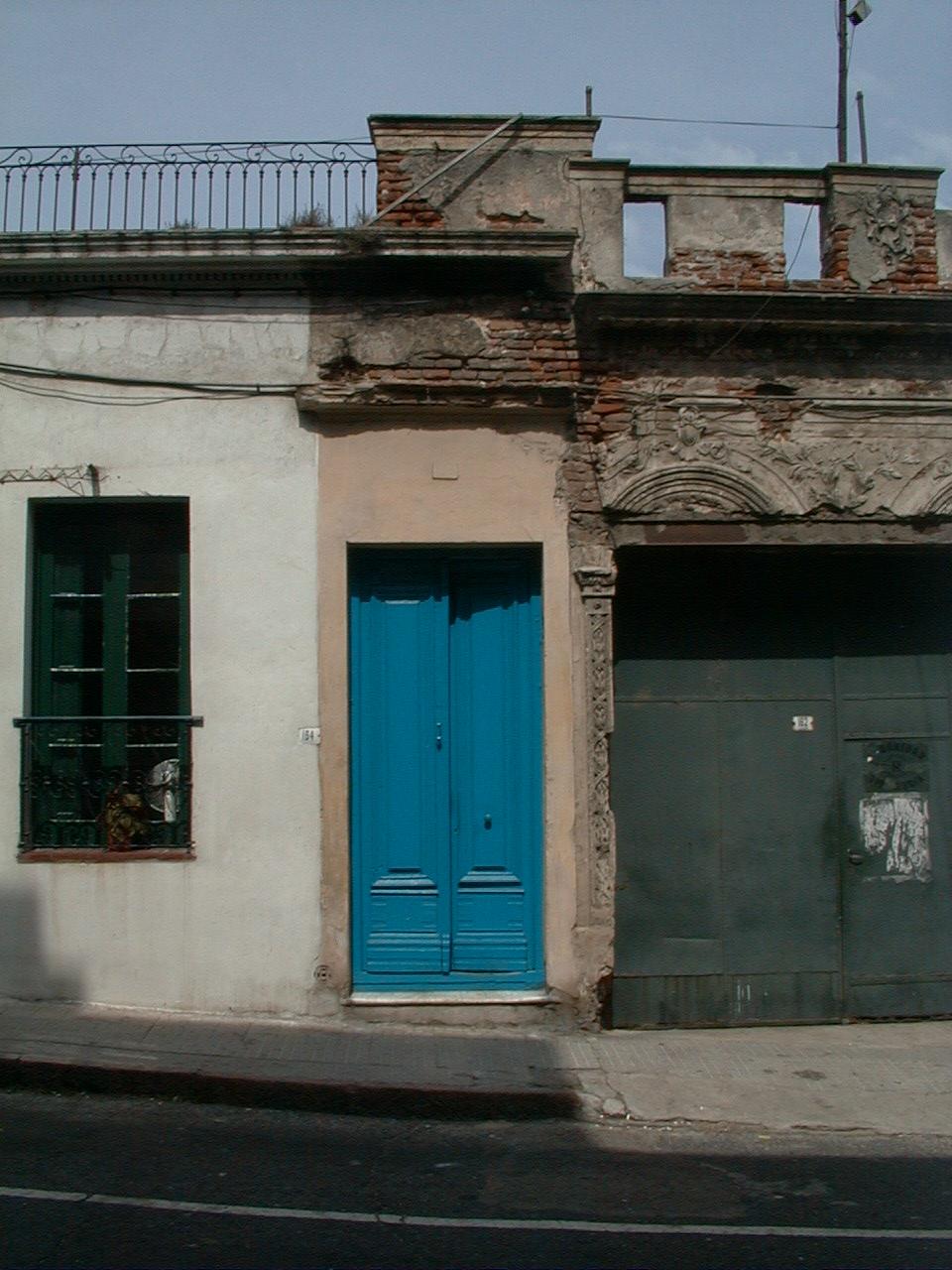 | Arquitectónica: | Modestas construcciones ubicadas en particular predio desarrollado en el interior de la manzana. Exteriormente su estrecha fachada se integra a las de los linderos hacia Maciel, conformando un conjunto unitario. La sustitución de la abertura original de acceso, su tratamiento cromático, y la falta de mantenimiento, empobrecen la imagen.