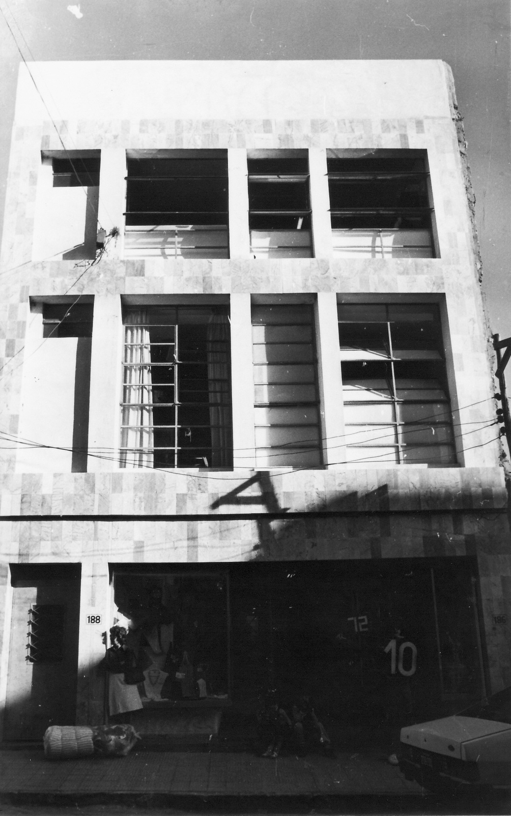 Edificio de la segunda mitad del siglo XX, destinado originalmente a local comercial en planta baja, con áreas de depósito y taller en los pisos superiores. Se desarrolla en tres niveles. Actualmente se encuentra desocupado. La fachada presenta grandes aberturas. El edificio se encuentra exteriormente en buen estado de conservación, pero requiere operaciones de mantenimiento.