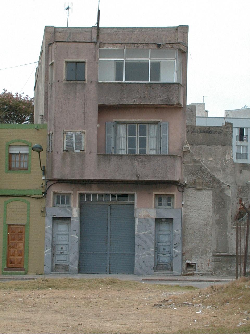 | Urbanística: | Se inserta en un tramo distorsionado por la presencia de las precarias construcciones del lindero hacia Maciel, manteniendo alineación predominante y asociándose por su formalización a los linderos hacia Guaraní. La medianera expuesta empobrece la imagen del tramo. |