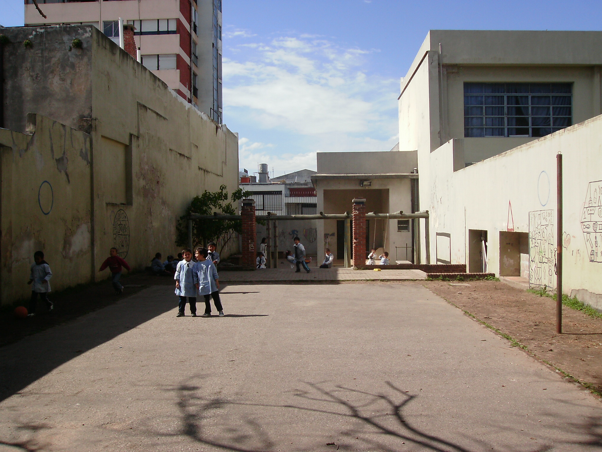 | Arquitectónica: | Predio cerrado por muro frontal, que integra el patio de recreo del jardín de Infantes Nº 218. Contrasta con los linderos por su menor altura y por la incorporación de rejas que empobrecen la imagen.