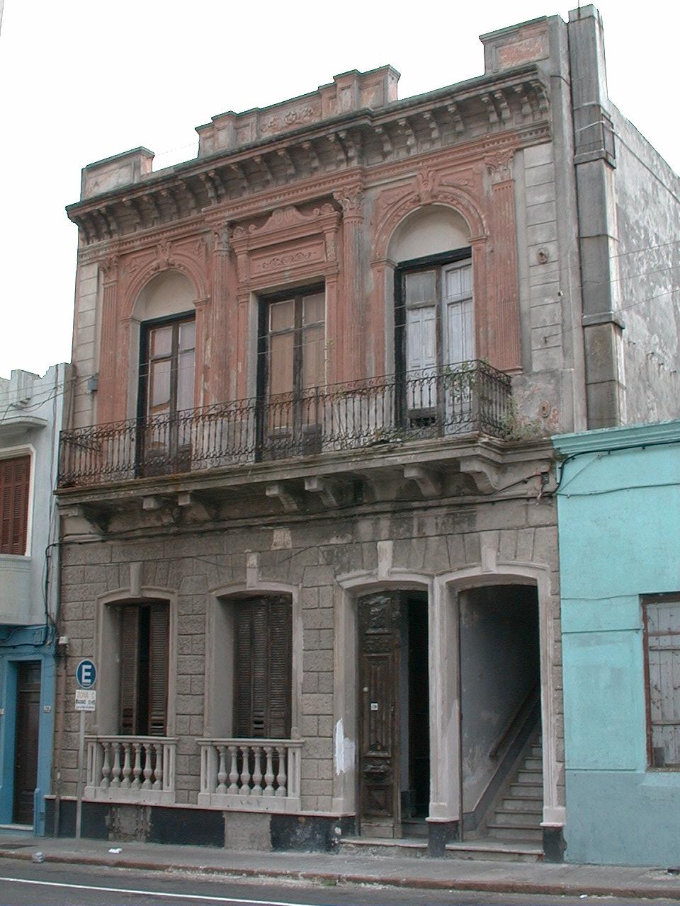 Edificio construido en el entorno de 1900, desarrollado en dos niveles, que albergaba una vivienda en cada uno de ellos y que actualmente se encuentra desocupado. La fachada de lineamientos eclécticos, presenta un basamento almohadillado que abarca toda la planta baja, en el cual se destacan los balcones con balaustres de mármol. Una planta alta caracterizada por semi columnas y pilastras corintias que enmarcan los vanos sobre los cuales se concentra la decoración y un sencillo balcón corrido de herrería. El edificio, se encuentra exteriormente en buen estado de conservación, pero requiere operaciones de mantenimiento.