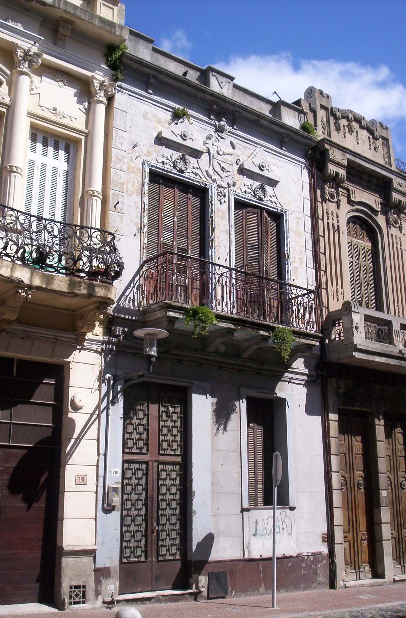 | Arquitectónica: | Edificio de vivienda de dos niveles asociada en vertical, construida a fines del siglo XIX. Presenta interés en su fachada a pesar de las alteraciones algo perjudiciales que ha sufrido en la planta baja; se conserva sin alterar en planta alta, presentando ornamentación sobre los vanos y balcón sobre ménsulas con baranda de hierro. Edificio que cobra particular interés en relación al tramo que integra. |
