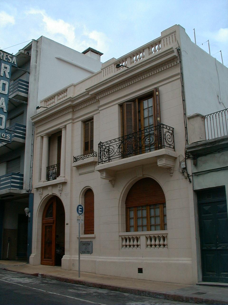 Edificio de vivienda en dos niveles construido en 1921. Su fachada presenta diversidad de vanos e incluso de barandas. El acceso se jerarquiza por el tratamiento del primer piso, en el cual una pequeña loggia es remarcada con dos columnas dóricas. Actualmente funcionan las oficinas de un estudio contable. Se conserva en buen estado.