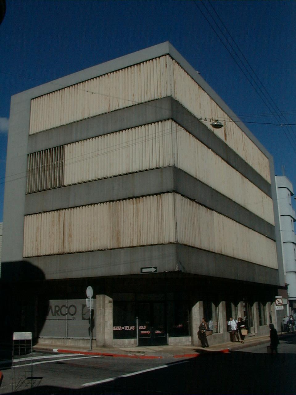 | Arquitectónica: | Correcto ejemplo de arquitectura moderna, cuya contundente fachada recientemente remodelada, ha perdido elementos característicos del diseño propios del período, especialmente la faja de parasoles verticales, empobreciendo su imagen.