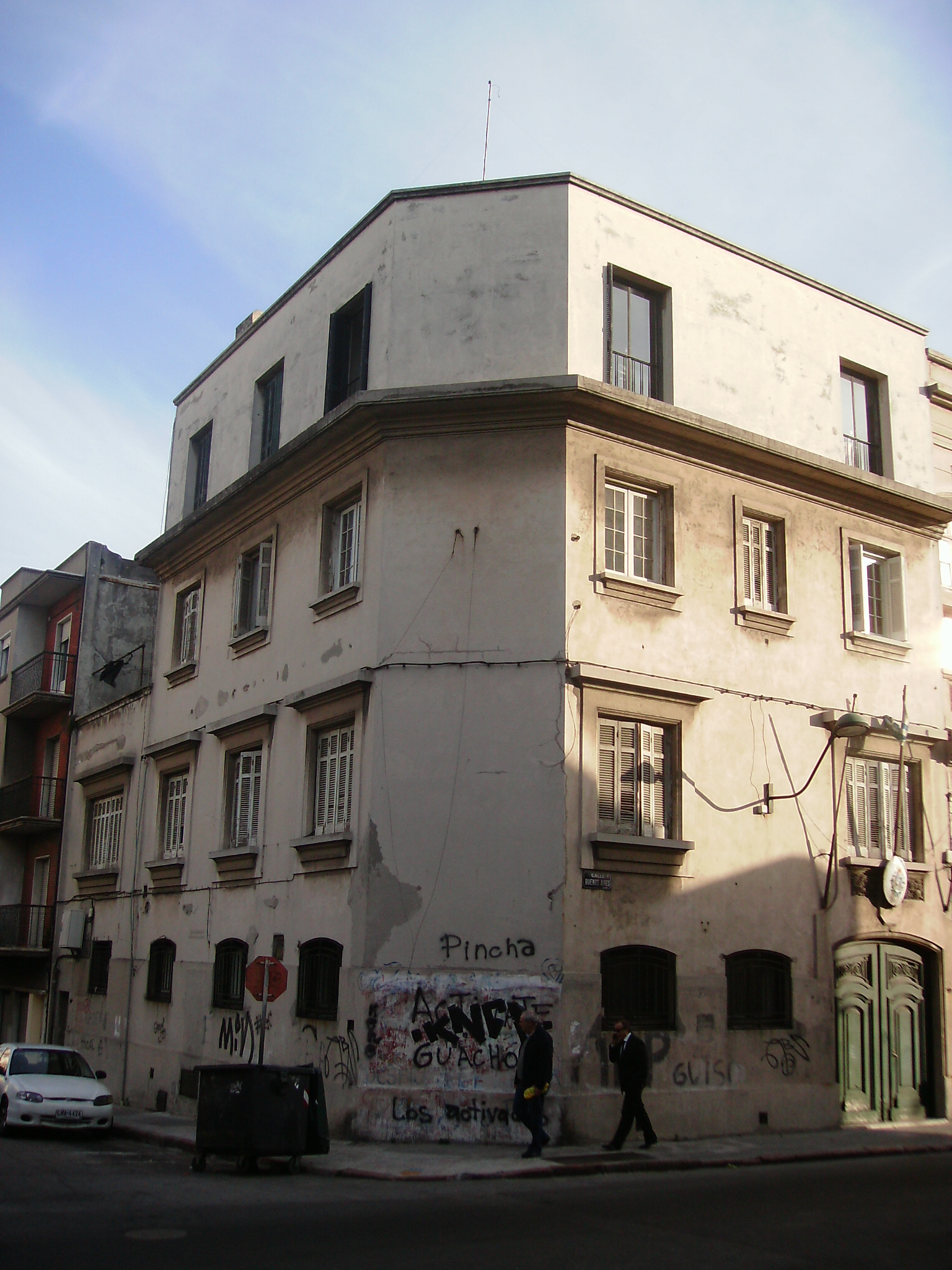 | Urbanística: | Edificio de importantes proporciones, que responde a la situación de esquina con una ochava “ciega”, y que mantiene alineación de los linderos, asociándose por su altura al lindero por Buenos Aires.