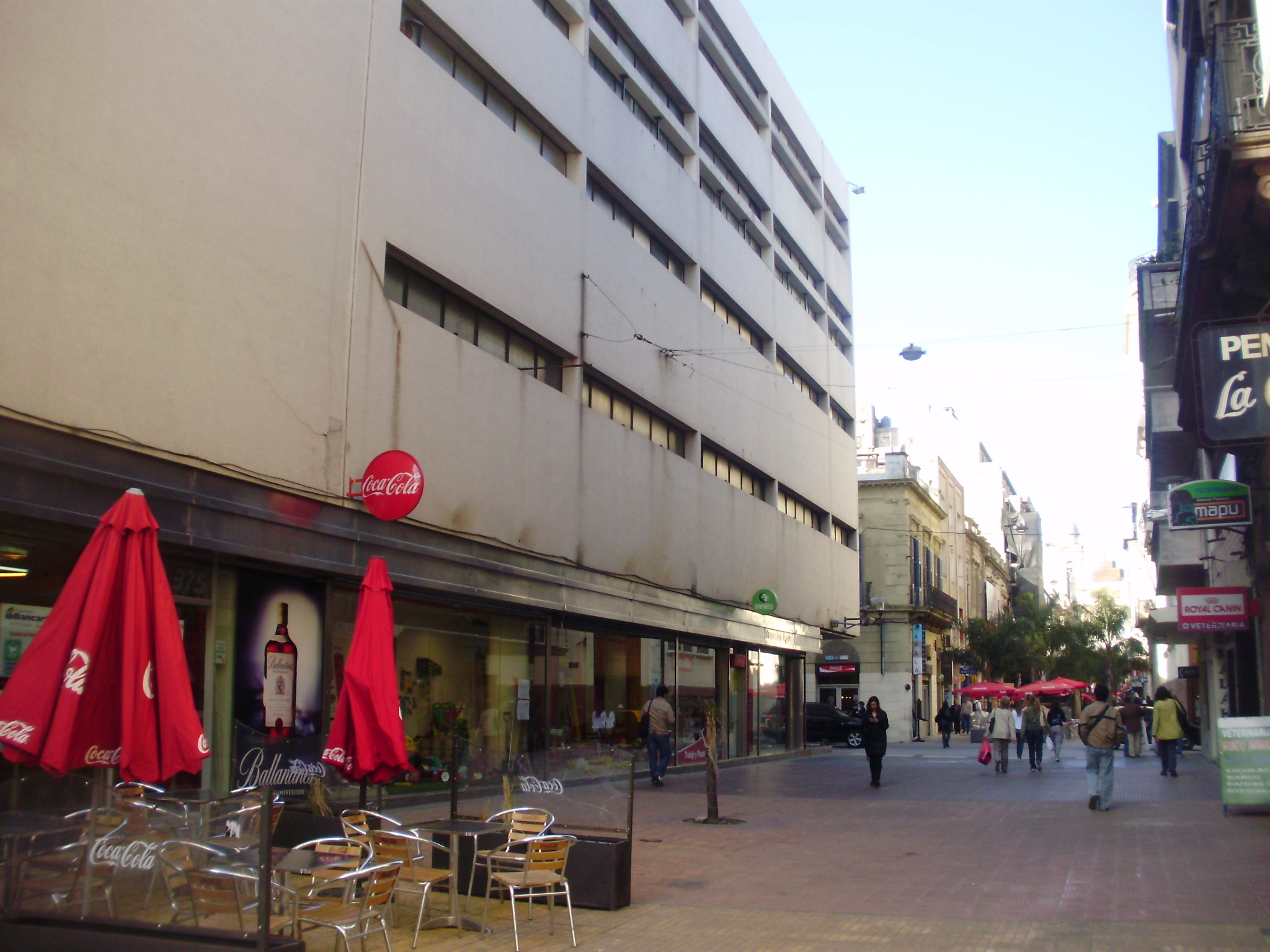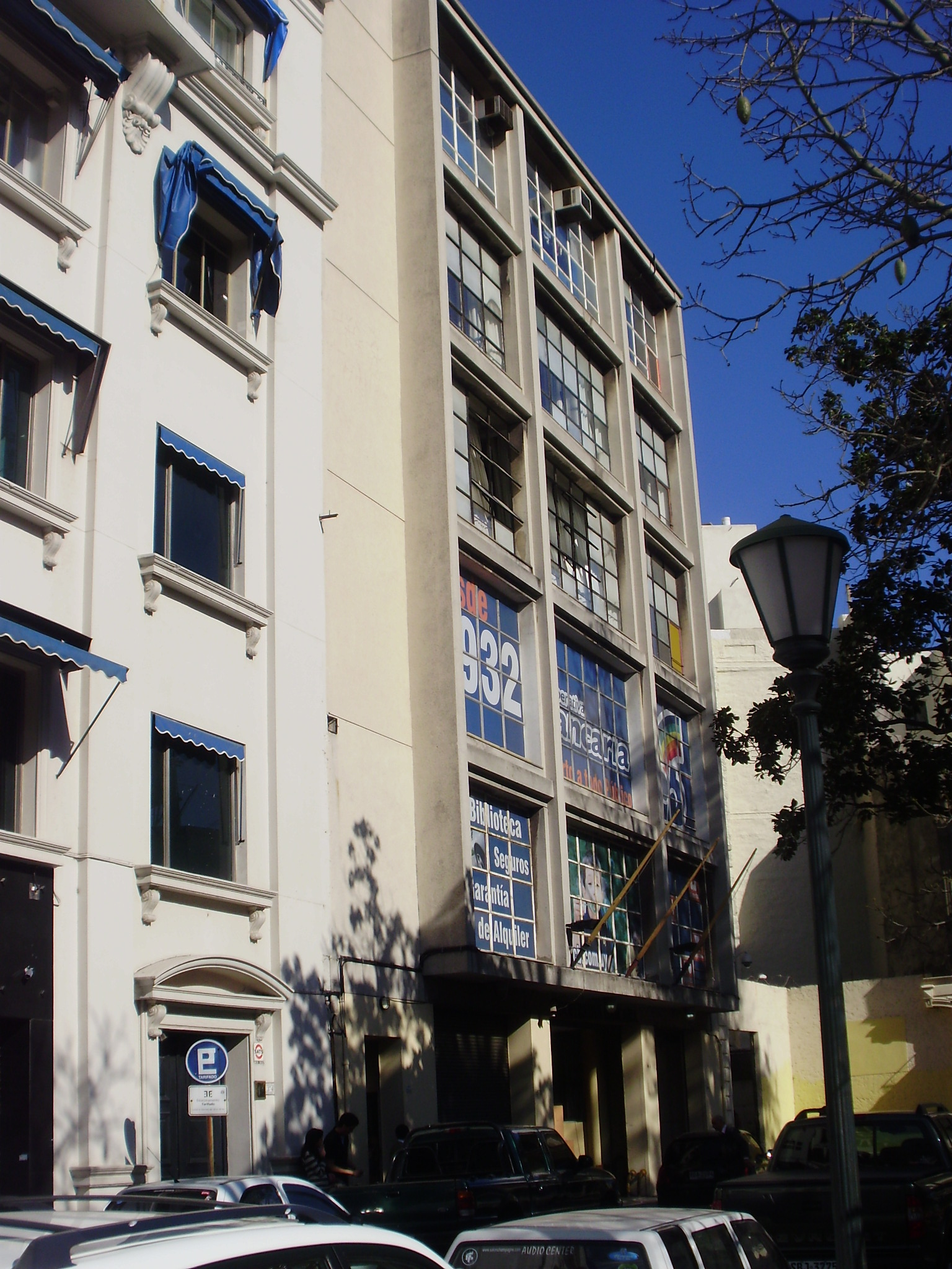 | Arquitectónica: | Interesante ejemploo de edificio multiprogramático resuelto según los códigos formales de la arquitectura moderna de mediados de siglo XX. Sobre la esquina de Sarandí y Zabala el edificio se resuelve como un contundente volumen revestido en pastillas cerámicas. Las estrechas ventanas corridas que se leen como incisiones en el volumen, remarcan el carácter moderno y abstracto de esta arquitectura cuya única concesión expresiva se limita al mural abstracto que incorpora en su fachada por calle Zabala. Hacia Plaza Zabala, como también sobre un tramo de calle Zabala, la abstracta e introvertida volumetría es reemplazada por una fachada vidriada organizada según el entramado estructural. |