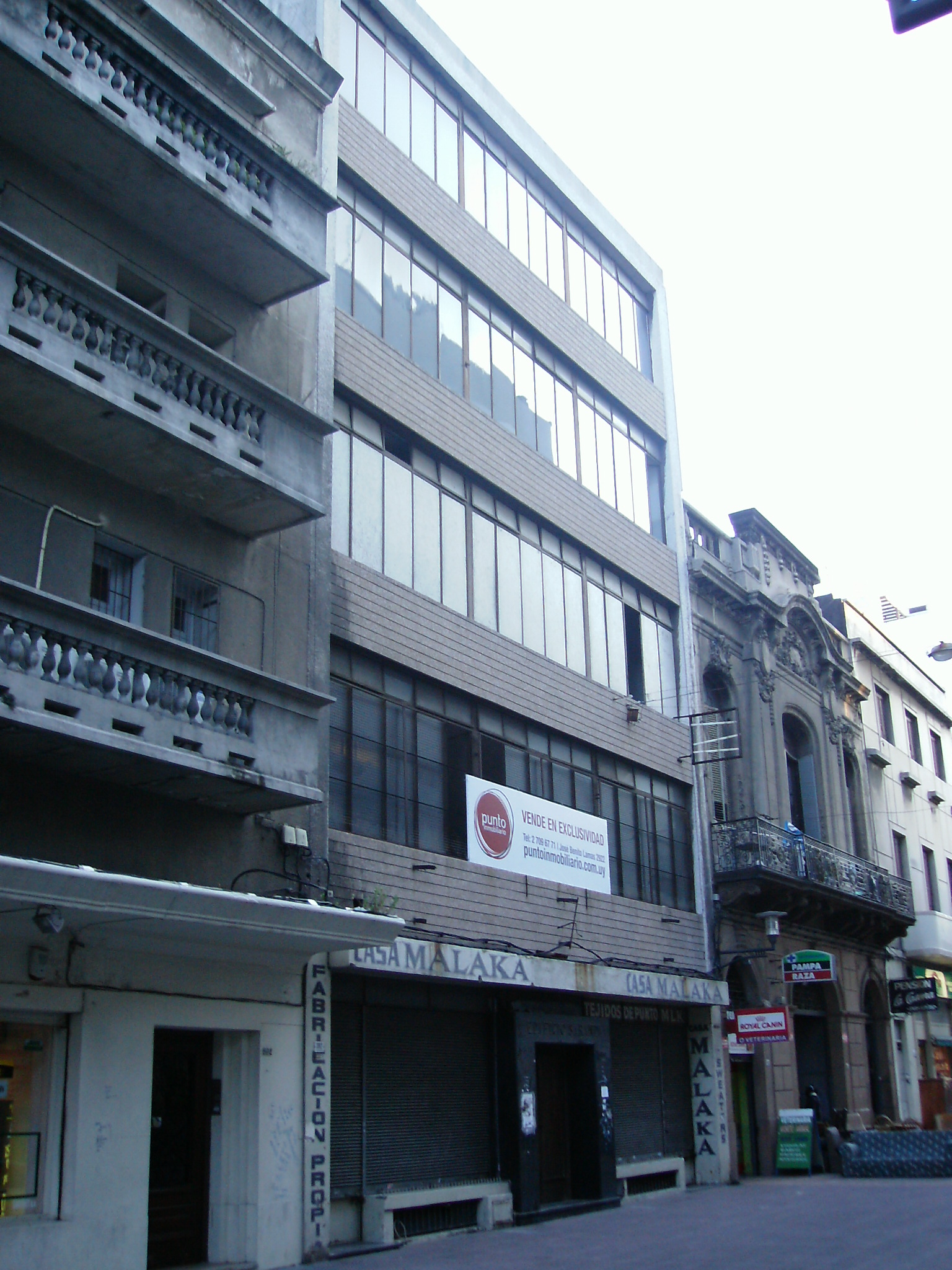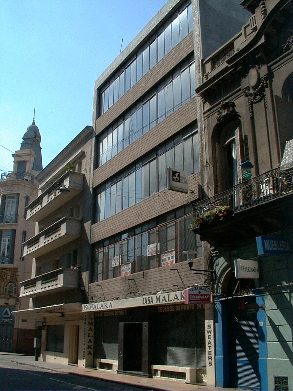Edificio construido a mediados del siglo XX, desarrollado en 5 niveles, que actualmente se encuentra desocupado. La planta baja aloja dos locales comerciales y el acceso a las plantas superiores originalmente destinadas a oficinas. La fachada, se estructura en franjas horizontales alternando vanos y llenos. Exteriormente ha sufrido algunas alteraciones fácilmente reversibles, como la sustitución de vidrios por placas de OSB, y se encuentra en buen estado de conservación.