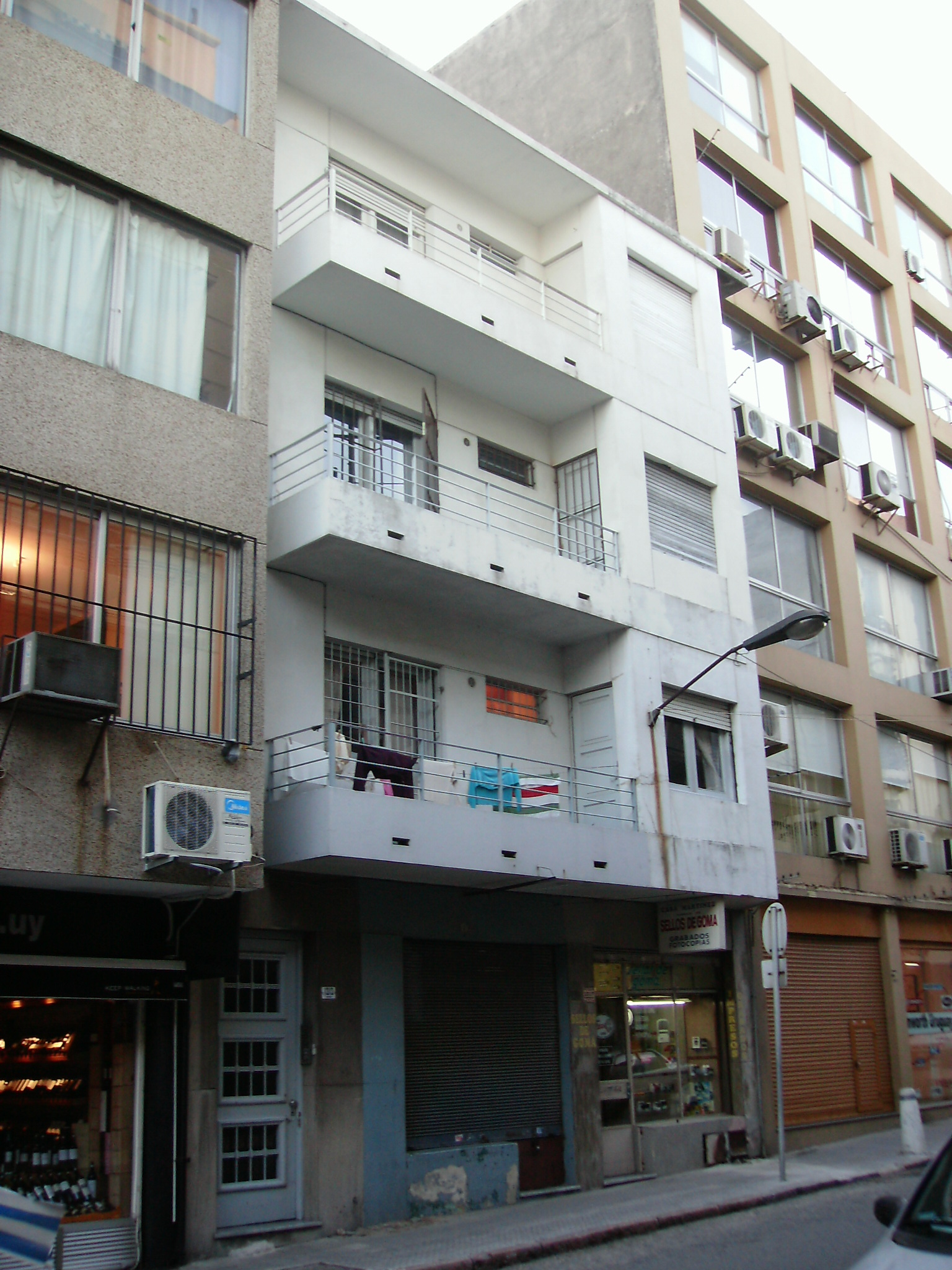 Edificio construido alrededor de 1950. Se desarrolla en 4 niveles. En planta baja alberga dos locales comerciales (uno de ellos desocupado), en tanto en las plantas altas se alojan apartamentos. Su discreta fachada, conserva en planta baja la alineación predominante, en tanto el desarrollo pautado por la presencia de balcones corridos, avanza sutilmente sobre la acera. Sus proporciones respetan la escala de la calle en un tramo muy heterogéneo. Se encuentra en buen estado de conservación.
