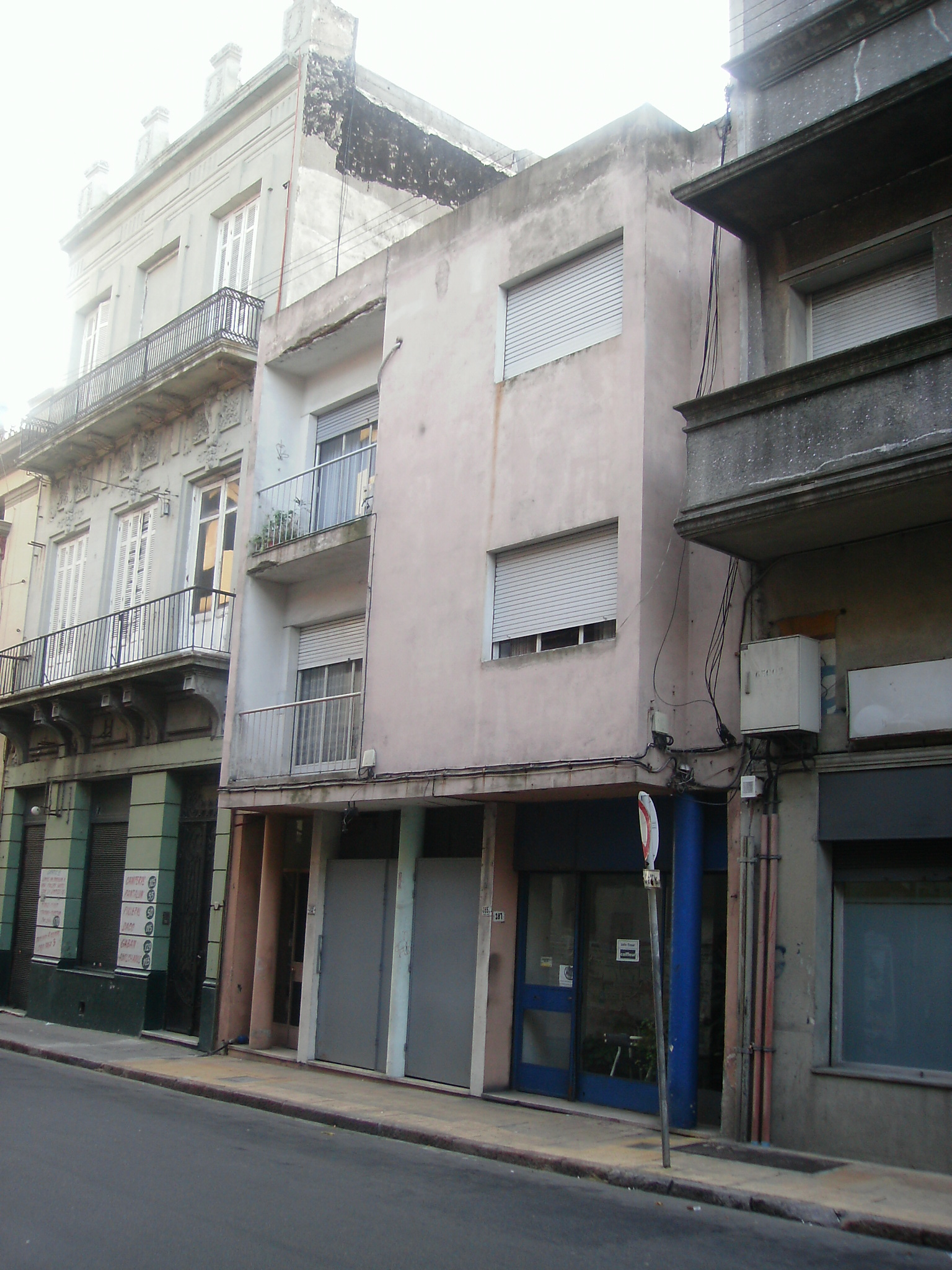 Edificio de propiedad horizontal construido a mediados del siglo XX, desarrollado en tres niveles. La planta baja alberga 2 locales comerciales, uno de ellos adaptado como depósito, y el acceso a los apartamentos. Funcionalmente se organiza en torno a 2 pozos de aire y luz. Su discreta fachada, conserva en planta baja la alineación predominante, destacándose la presencia de pilares junto a los accesos, en tanto el desarrollo está conformado por un volumen que avanza sutilmente sobre la acera. Se encuentra en buen estado de conservación, aunque requiere operaciones de mantenimiento.
