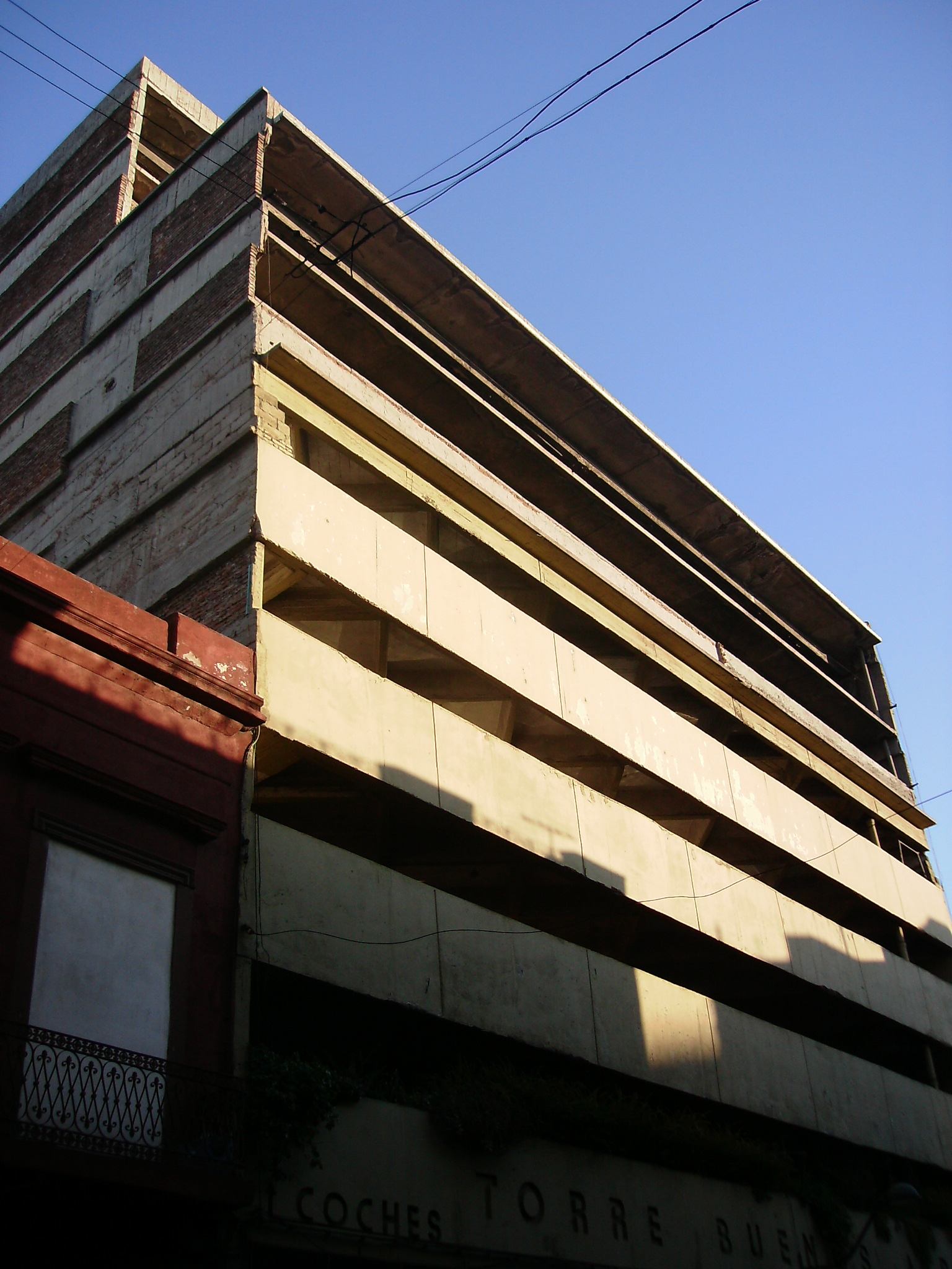| Urbanística: | Se inserta en un tramo de carácter heterogéneo, generando una distorsión en el mismo, al contrastar por su masa y proporciones. La falta de terminación empobrece el sector. |