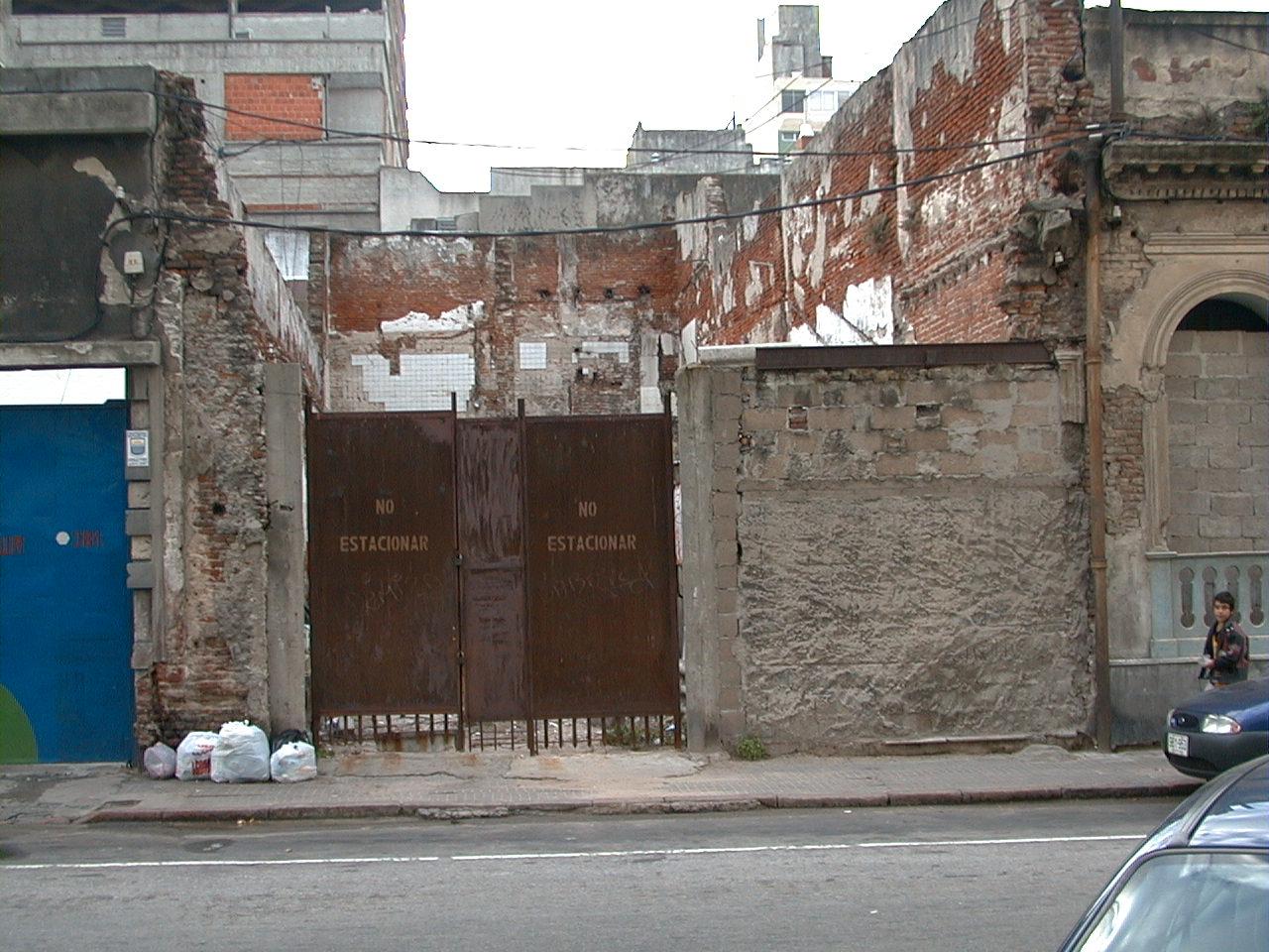 4.3- Alineación y altura corresponden al muro frontal. 4.5- Muro frontal y portón en muy mal estado de conservación.