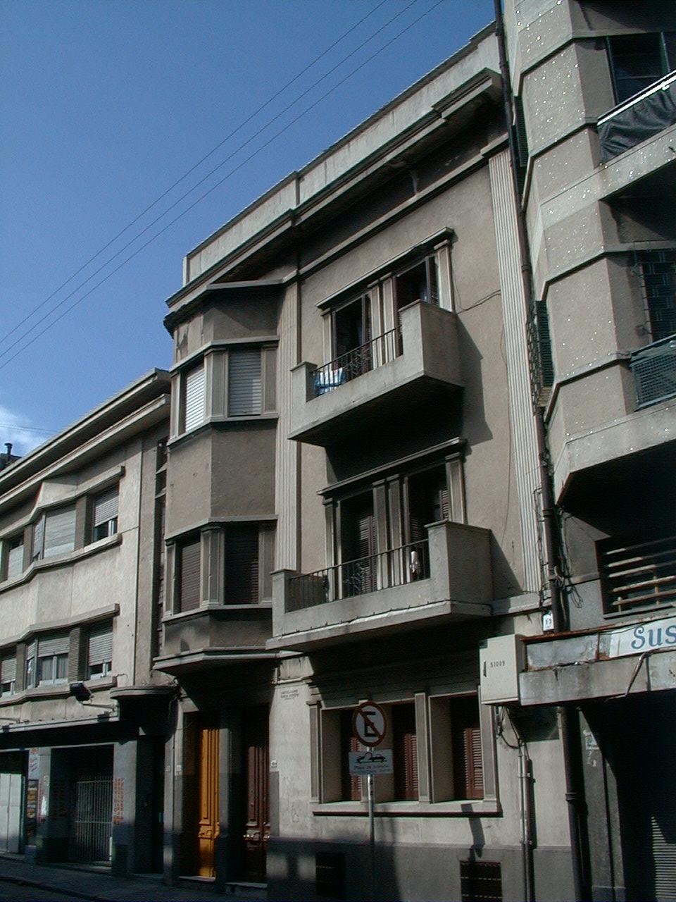 Edificio de vivienda en 3 niveles construido a fines del siglo XIX y reformado en el año 1939. La estructura espacial se organiza en torno a 2 pozos de aire y luz. Su fachada se conforma a partir de dos paños verticales, uno saliente sobre el acceso en forma de bow-window y el otro pautado por la presencia de balcones macizos con barandas de hierro. El conjunto sobrio y proporcionado se relaciona adecuadamente con sus linderos.