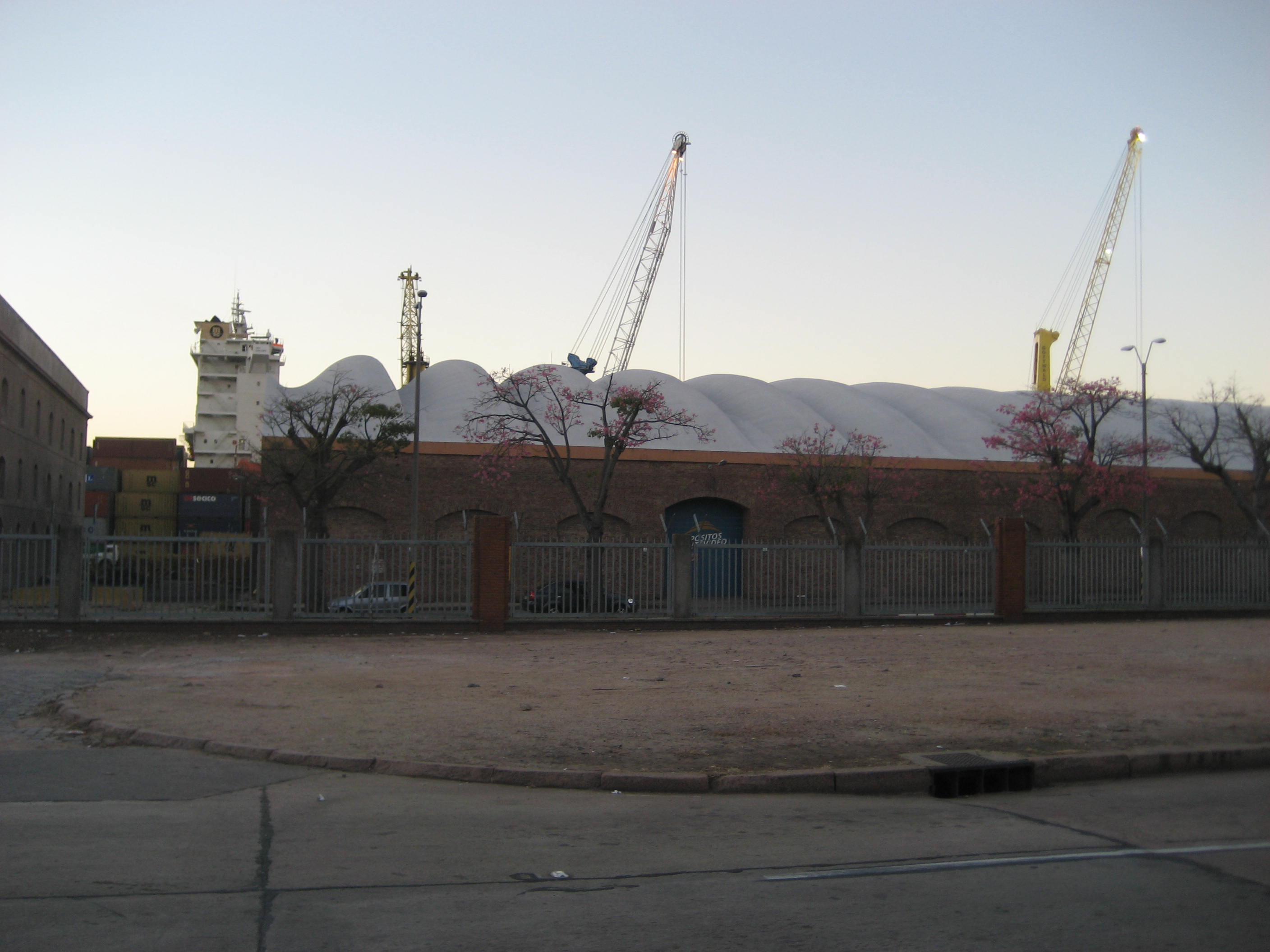 Antiguo depósito portuario construido a principios del siglo XX y reciclado en 1978 por el ingeniero Eladio Dieste. El llamado a licitación que preveía la posibilidad de demolerlo, lleva a Dieste a proponer mantener los viejos muros y sobre ellos construir una nueva cubierta de cerámica armada de doble curvatura. La propuesta de reutilizar la estuctura existente y el costo de la obra, determinaron su adjudicación. El nuevo proyecto reforzó la vieja mampostería de ladrillo de las paredes donde se apoyan las bóvedas que componen la nueva cubierta (cincuenta metros de luz con una cáscara gausa de doce centímetros de espesor sin apoyos intermedios). Estrechas aberturas, a modo de finos tajos, acentúan la ondulación de la cubierta y dotan el lugar de una pareja luminosidad y una sorprendente condición espacial. El edificio forma parte del característico borde portuario y se mantiene en buen estado.