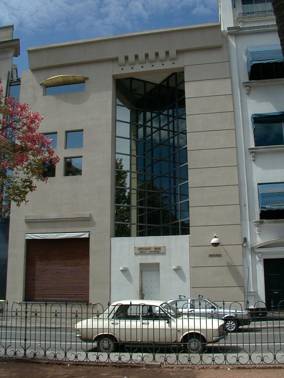 Edificio construido en 1994 como ampliación de una sede bancaria sobre un nuevo padrón resultante del fraccionamiento del padrón 3916 o solar 1. Se desarrolla en cuatro niveles. La planta baja se comunica con la construcción del padrón 3930 (solar 15) albergando las cajas y la atención directa al público, mientras los niveles restantes albergan las oficinas del banco. La propuesta arquitectónica se afilia a los lineamientos posmodernos, proponiendo para su fachada un diseño que recurre a distintas resoluciones de vanos y al efecto generado por las superficies reflejantes y los contrastes cromáticos. Su estado de conservación es bueno.