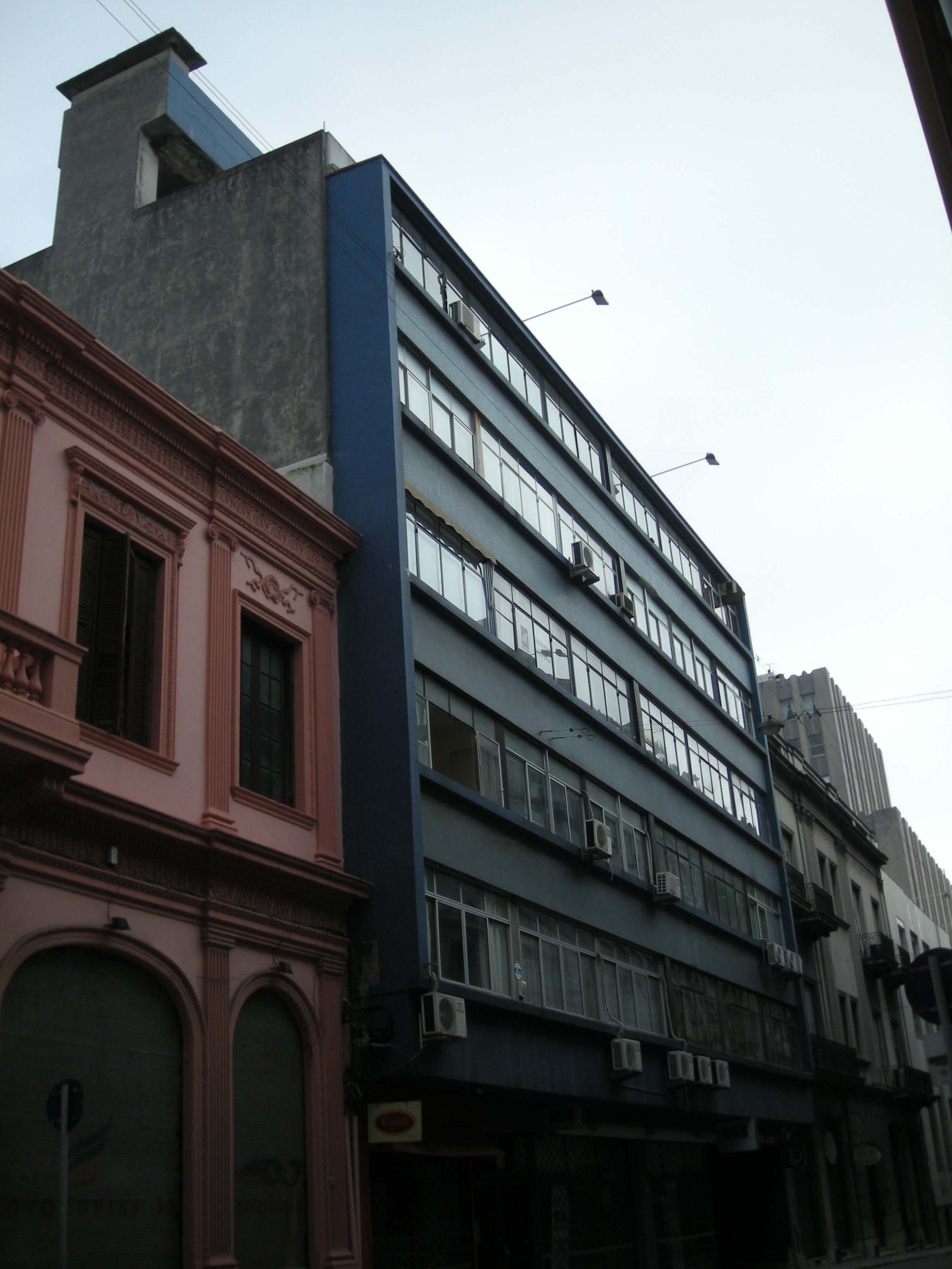 Edificio de propiedad horizontal construido alrededor del año 1960. Presenta dos sectores diferenciados; uno frontal, desarrolla seis niveles destinados a oficina con planta baja comercial; y otro posterior, destinado a estacionamiento en estructura de semi pisos, desarrollado en diez niveles. Su fachada presenta un lenguaje moderno, se organiza en fajas horizontales opacas y vidriadas alternadas.