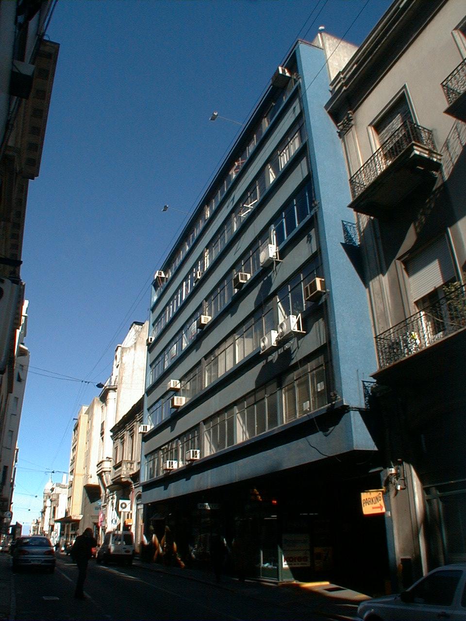 Edificio de propiedad horizontal construido alrededor del año 1960. Presenta dos sectores diferenciados; uno frontal, desarrolla seis niveles destinados a oficina con planta baja comercial; y otro posterior, destinado a estacionamiento en estructura de semi pisos, desarrollado en diez niveles. Su fachada presenta un lenguaje moderno, se organiza en fajas horizontales opacas y vidriadas alternadas.