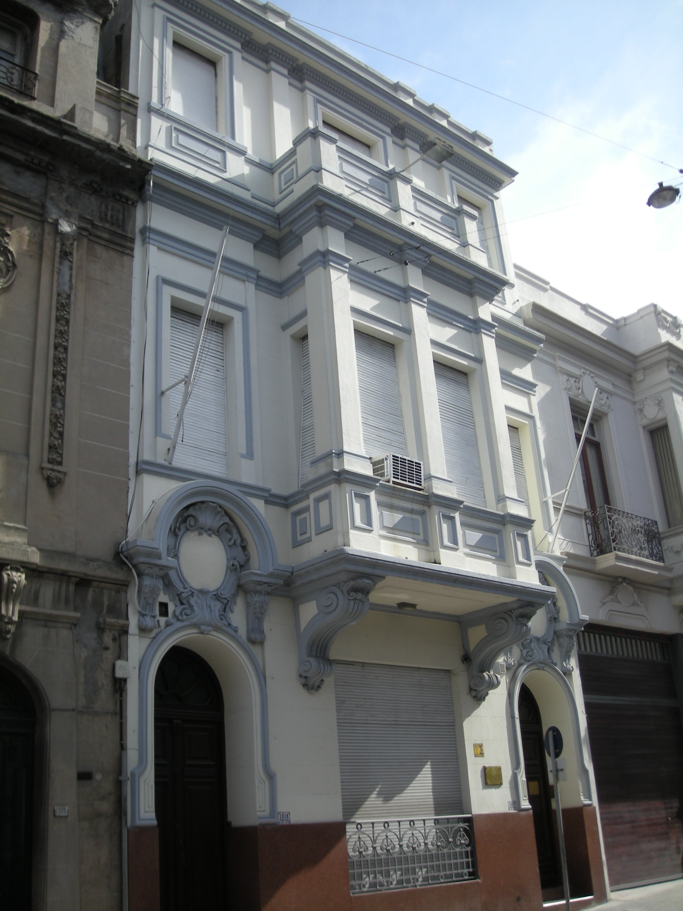 Edificio de vivienda unifamiliar construido a principios del siglo XX. Se desarrolla en planta baja y dos niveles superiores que alojan una serie de oficinas, sala de reuniones y conferencias. Se organiza en torno a un patio lateral de iluminación cenital, al que se vuelca el piso intermedio. Internamente la vivienda se comunica a través de un ascensor no original, en tanto una escalera helicoidal vincula las áreas de servicios. De composición tripartita, con un segundo piso agregado en 1929, el tratamiento superficial de su fachada se dispone acentuando la relación entre llenos y vacíos, con un volumen saliente al centro, flanqueado por dos puertas de acceso fuertemente enfatizadas por arcos dobles y medallones. Estilísticamente las referencias simbólicas de sus fachadas e interiores expresan el lujo aristocrático exigido por la burguesía en la época de su construcción. El edificio presenta agregados y modificaciones que no alteran sustancialmente su diseño original, encontrándose en buen estado de conservación.